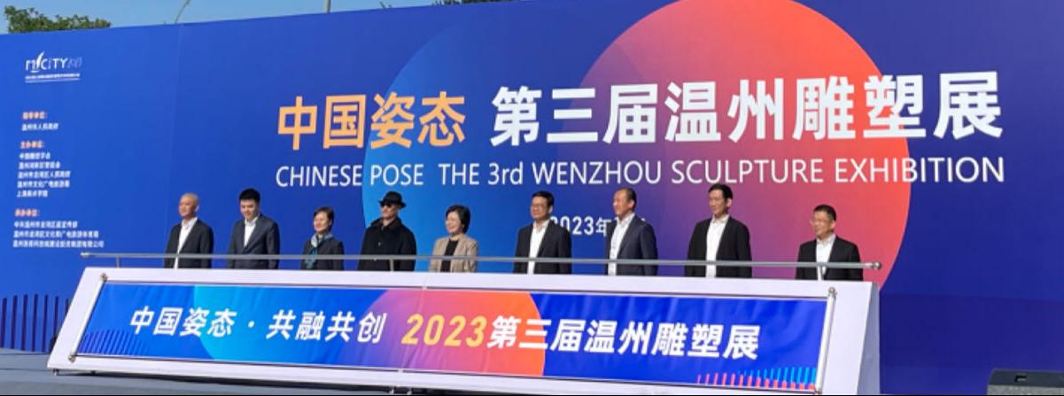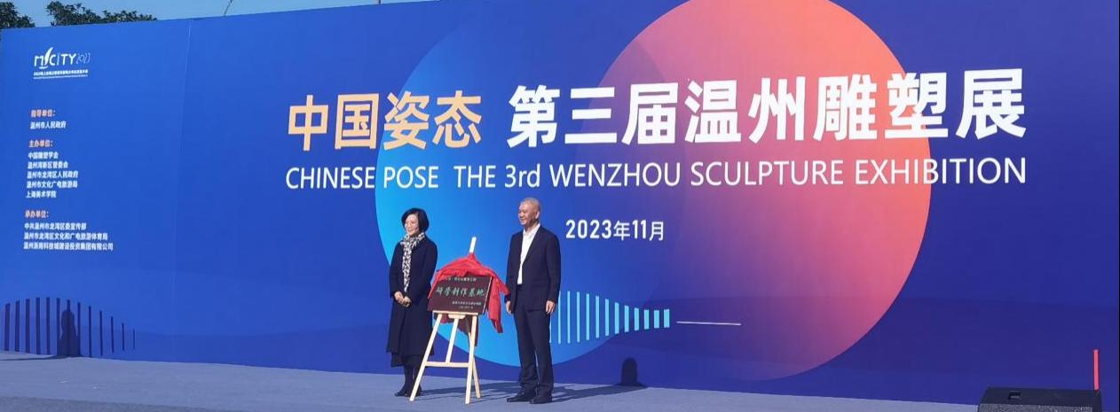 2023年11月23日,“中国姿态·共融共创”第三届温州雕塑展在黄石山雕塑公园开幕,谢子静院长代表js6668金沙登录入口出席活动。