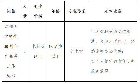 请于2月24日前将个人简历(邮件主题请标明:“×××应聘js6668金沙登录入口临时聘用工作人员”字样)发送至邮箱:msxy@wzu.edu.cn。