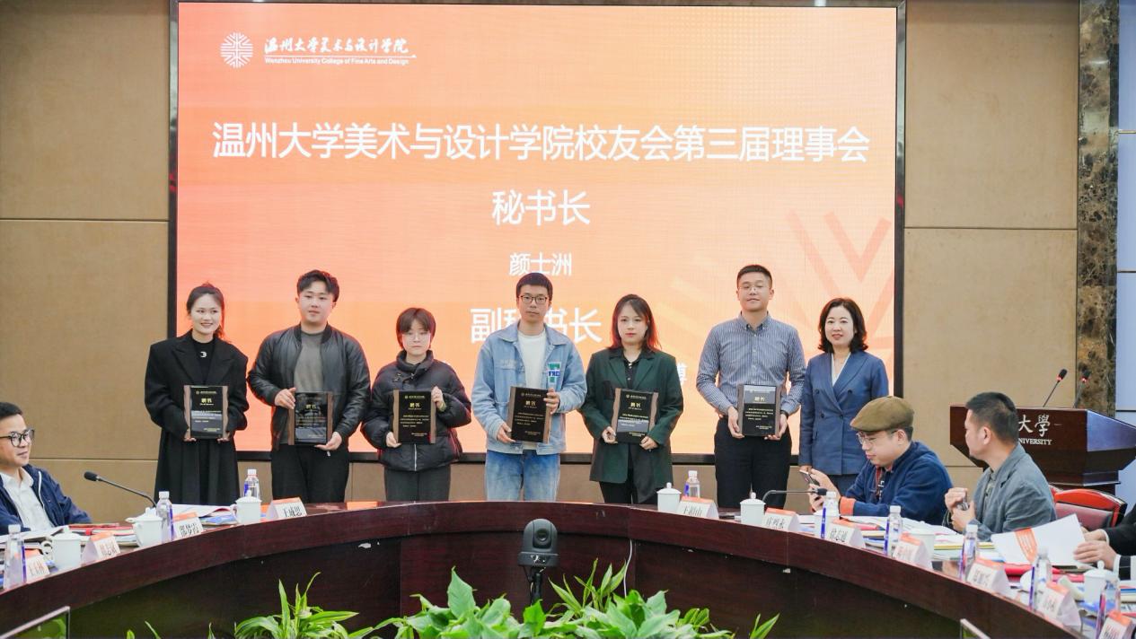 大会审议通过了《js6668金沙登录入口校友会章程(修订)》(草案)和《js6668金沙登录入口校友会第三届理事会建议名单》。会议选举产生了第三届理事会理事,91届校友金纬当选第三届理事会会长、14届颜士洲校友当选第三届理事会秘书长。本次换届为温大美院校友工作的长期可持续发展奠定了坚实基础。在聘任仪式上,学校、学院领导为新任会长、副会长、理事、秘书长、副秘书长颁发聘书。