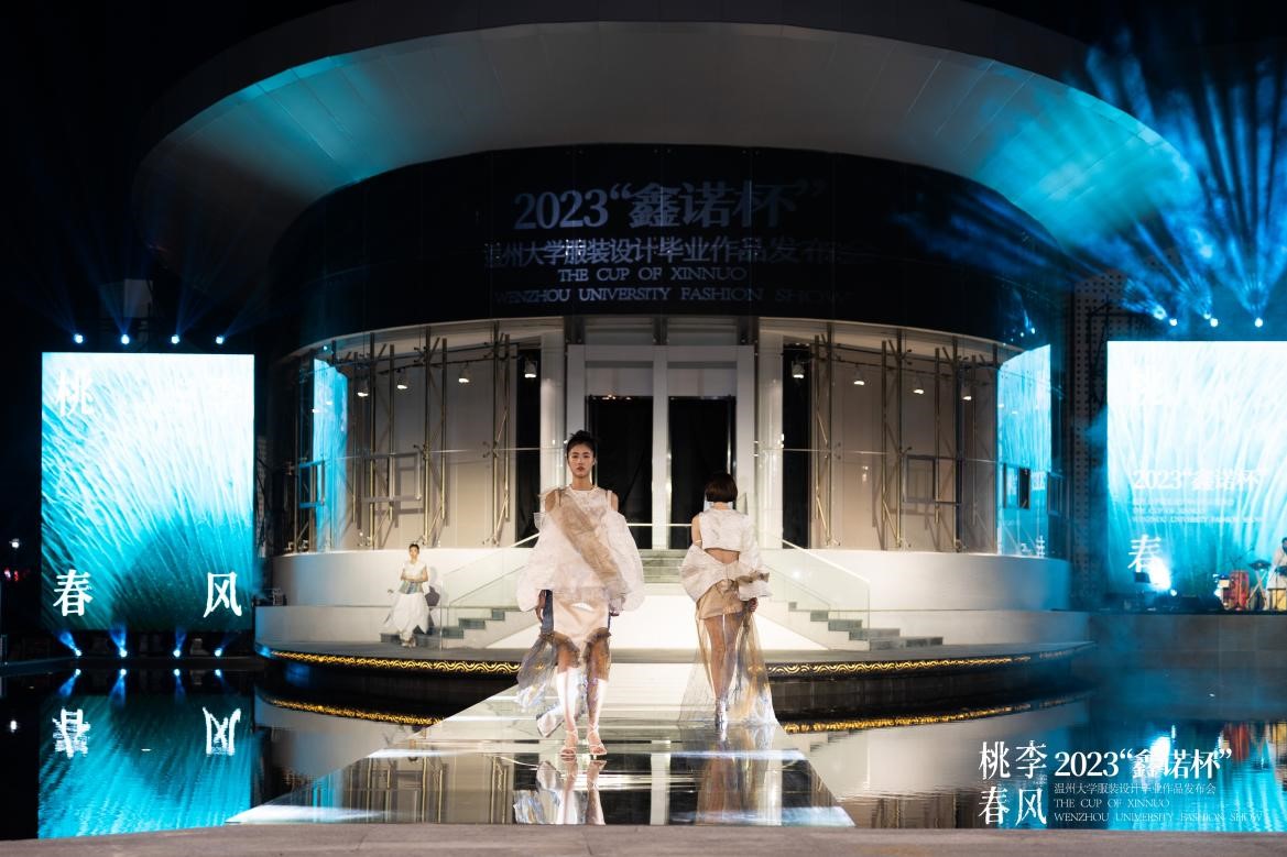 这场时装秀不同于往年的毕业秀,是首次在高校的美术馆水上T台举行服装设计专业的毕业大秀。本次发布会以桃李春风为主题,由30位js6668金沙登录入口服装与服饰设计即将毕业的学生主导,在创意和时尚的碰撞中,探寻未来的温州时尚发展之路。