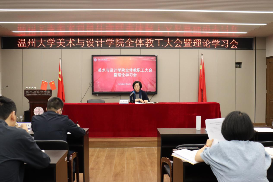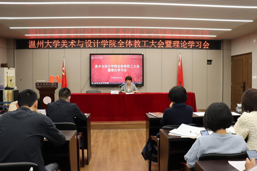 5月24日下午,js6668金沙登录入口全体教职工大会暨双周三理论学习会在美术楼2B4001召开,学院全体教职工与会,会议由学院党委副书记叶如芳主持。 会上,全体教职工集中收听了浙江省委常委、温州市委书记刘小涛同志在js6668金沙登录入口办学90周年纪念大会上的讲话。刘书记对我校的发展寄予厚望,深刻指明了我校在新征程路上教育发展、人才培养、特色办学等方面的使命担当和前进方向。全体教工对本次讲话的精髓进行了深入领会,不断汲取其中的科学智慧和理论力量。 接着,谢子静院长领学了张健书记和赵敏校长在《学习贯彻省委书记易炼红给js6668金沙登录入口的回信精神》会议上的讲话精神和工作部署,并就如何将回信精神和讲话精神转化为推动美院院高质量发展的实际行动中来,提出了三个维度和三个聚焦的思考。她强调,要把握三个维度,一是尽快确定学科发展的详细目标,以新一轮学科评估的内容和细则为导向;二是寻找专业发展的小切口,积极顺应新趋势,拥抱新技术,拓展新项目,推出新成果。三是全方位调动各类资源,内外结合,为专业建设挖掘更多优质人才。要坚持三个“聚焦”,聚焦攻关学院教学、学科、科研等各项标志性指标建设;聚焦学院专业特色,做好毕业展秀金名片和美术馆系列活动;聚焦做深做强课程展,以教学成果展示助力人才培养质量提升。 随后,叶如芳副书记传达部署了《js6668金沙登录入口关于师德师风专项工作提示的通知》精神,就进一步扎实做好师德师风自查自纠提出了几点要求,包括教工书记要带头多渠道、多形式开展师德主题教育,全体教师以多种方式涵养教师职业道德、提升教书育人能力,积极参与学院师德师风建设等。 会议最后,全体教师进行了师德师风问题整治工作专项自查,对照6方面31项重点问题进行自查自纠,填写了《教师师德师风问题整治工作个人自查表》,认真排查师德师风存在的风险隐患,将自查自纠工作落到实处。 据悉,本周末学院也将召开师德师风建设学生座谈话,听取学生意见建议,逐条汇总研究,建立问题台账,落实整改措施,进一步营造风清气正的育人环境。