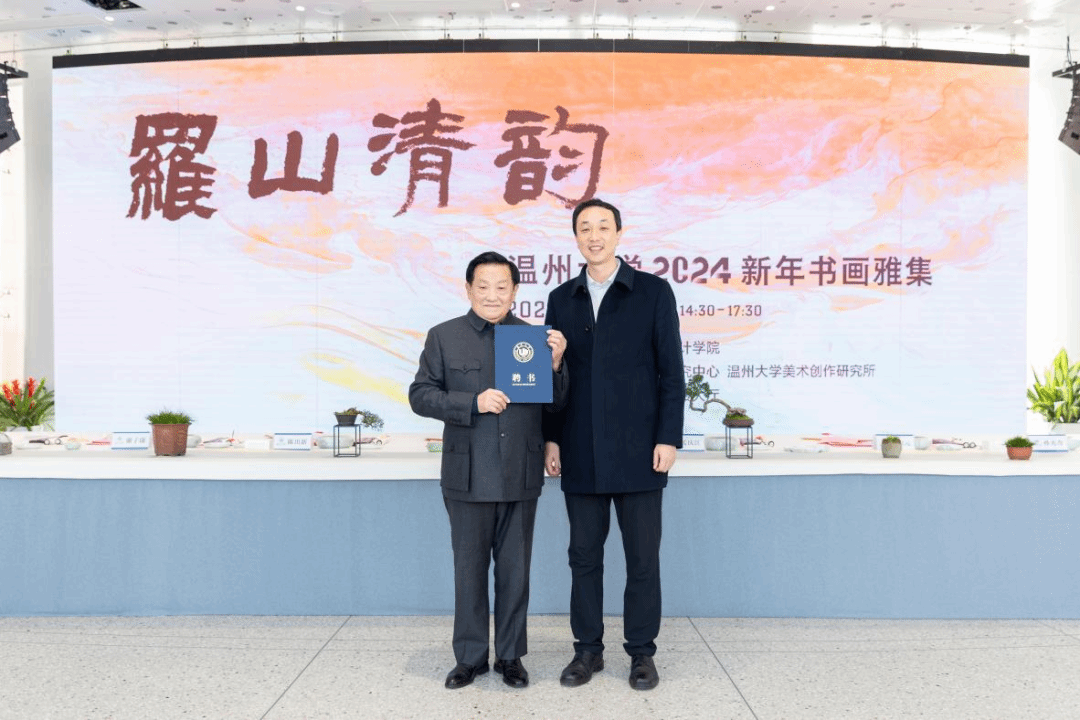 挥毫泼墨添锦绣,翰墨丹青绘新年。2023年12月29日下午,“罗山清韵——js6668金沙登录入口2024新年书画雅集”活动在js6668金沙登录入口美术馆隆重举办。本次活动由金沙官网主办,温州市社会美育研究中心和js6668金沙登录入口美术创作研究所共同承办,24 位温州书画名家和金沙官网美术、书法专业教师挥毫泼墨,现场创作书法、绘画作品,美术馆外张灯结彩,现场一片喜气祥和。 js6668金沙登录入口党委书记张健、温州市文联副主席谢子康、温州美术馆副馆长张真恺、人民美术出版社原副主编孟庆江、原温州师范学院美术系主任张如元、温州市美术家协会顾问孙光奇、温州市书法家协会顾问汪廷汉、温州书法家协会顾问陈出新、温州书法家协会顾问陈树冈、政协雁荡诗书画院顾问尚文光、js6668金沙登录入口特聘教授金松、温州市鹿城区美术家协会副主席阿岛、温州市书法家协会主席团委员王天津、学院班子全体成员和学院书法、绘画专业教师出席了雅集,各部门、学院师生代表、温大附幼小朋友以及留学生代表共100多人参加了活动。雅集开幕式由金沙官网院长谢子静主持。 活动正式开始前由温州音乐家协会古琴协会副会长谷雪艳女士为现场嘉宾和师生弹奏了古琴《流水》片段,在悠悠琴音中雅集活动拉开序幕。 首先举行了作品捐赠仪式。孟庆江先生将其创作的《徐定超肖像画》捐赠给js6668金沙登录入口美术馆。学校党委书记张健为孟庆江先生颁发客座教授聘书。原温州师范学院美术系首届系主任叶玉昶先生将其创作的2幅花鸟画精品捐赠美术馆。 随后,在现场师生和嘉宾的共同见证下,张健书记、张如元先生、孟庆江先生和谢子静院长共同为新年雅集启幕。 “学者必以规矩,焕乎其有文章”,美术馆门厅悬挂的此幅对联是张如元先生为本次雅集活动专门创作。启幕仪式后,张健书记为师生赠送了福字和春联,以表达对师生们的新年美好祝愿。 书画嘉宾挥毫泼墨,现场创作了120多幅春联和福字送给前来参加活动的师生,为他们送上浓浓的新春祝福。前来领取福字和春联的师生络绎不绝,现场气氛格外热烈,为冬日校园增添了浓浓的年味。 新春送福环节结束后进行了迎新雅集,参加雅集的书画嘉宾以书画会友,提笔落墨,创作热情不减,并将现场创作的作品赠与温州大学美术馆收藏。 本次新春书画雅集是金沙官网获批温州市社会美育研究中心后开展的首场活动,得到全校各部门及社会广泛关注,使全校师生更深切的感受到传统文化的魅力,为师生们传递了美的力量,同时也增强了高校与地方在美育工作建设中的互动,发挥高校在美育工作中的作用。