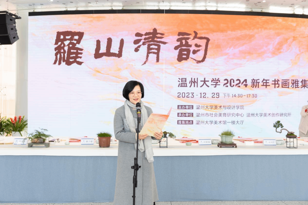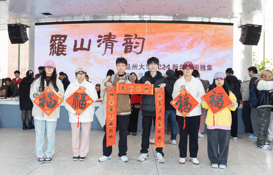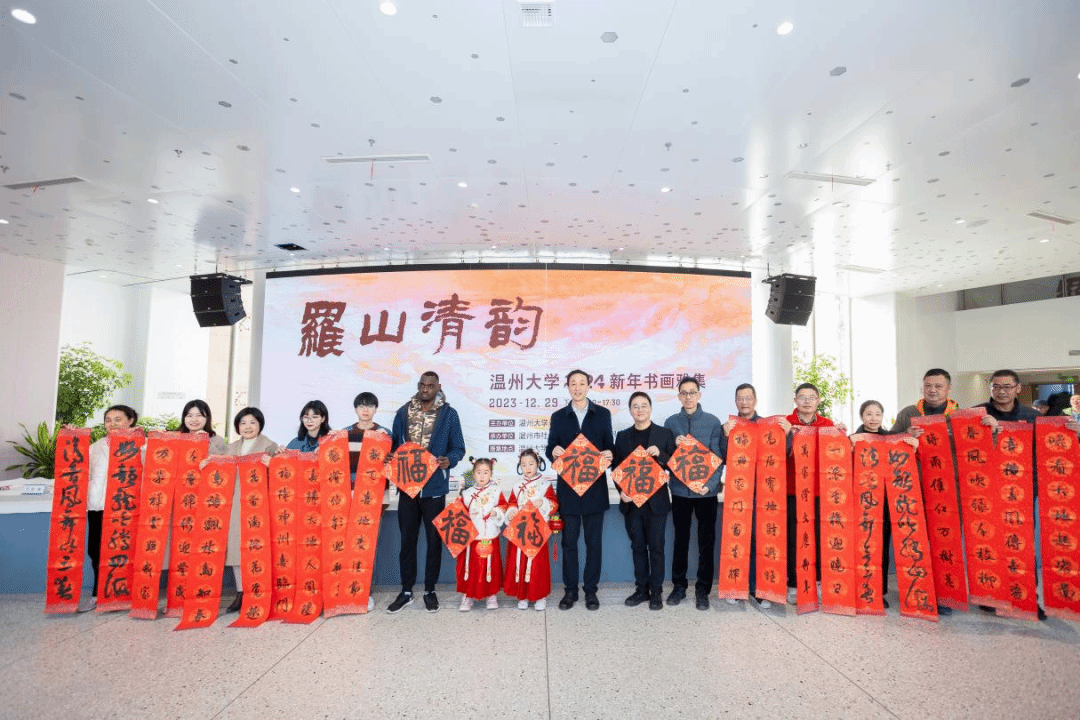 挥毫泼墨添锦绣,翰墨丹青绘新年。2023年12月29日下午,“罗山清韵——js6668金沙登录入口2024新年书画雅集”活动在js6668金沙登录入口美术馆隆重举办。本次活动由金沙官网主办,温州市社会美育研究中心和js6668金沙登录入口美术创作研究所共同承办,24 位温州书画名家和金沙官网美术、书法专业教师挥毫泼墨,现场创作书法、绘画作品,美术馆外张灯结彩,现场一片喜气祥和。