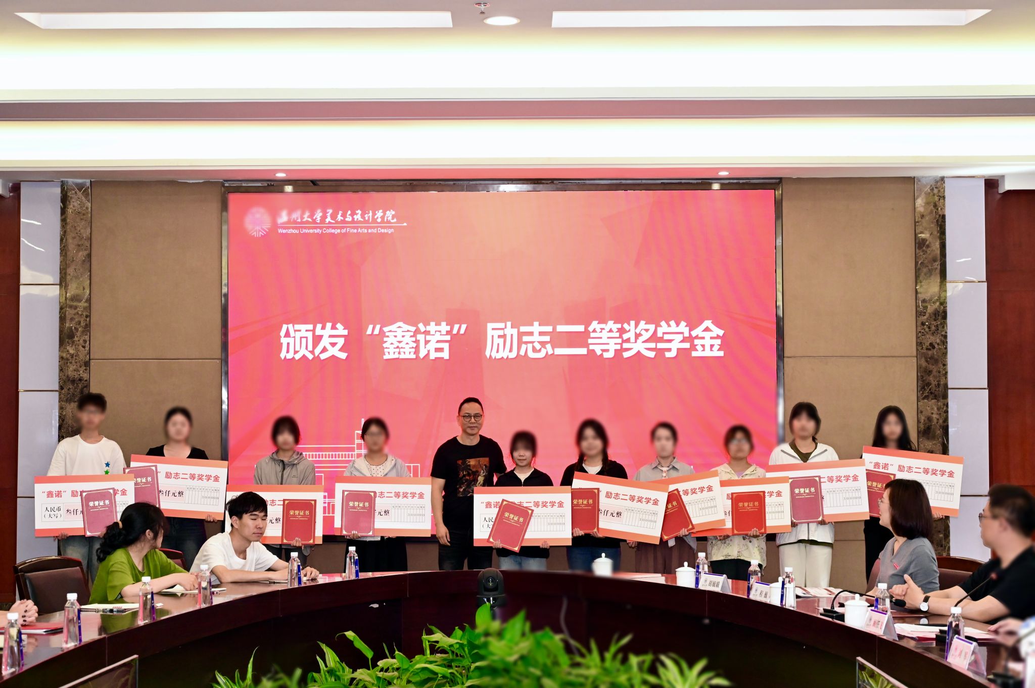 5月18日下午,js6668金沙登录入口“鑫诺”励志奖学金颁发仪式在岩松堂白鹿厅隆重举行。js6668金沙登录入口杰出校友、海宁鑫诺服装有限公司董事长刘军,js6668金沙登录入口优秀校友莫欣,学院党委书记叶正飞以及js6668金沙登录入口师生代表参加本次颁发仪式。仪式由学院副院长顾任飞主持。会议伊始,与会嘉宾通过观看短视频回顾了一年来在鑫诺基金的助力下,学院在人才培养成果展示、人才培养项目资助及贫困生励志资助等方面开展的系列活动及取得的成效。(观看视频)学院党委书记叶正飞在致辞中向刘军校友表达了由衷的感谢,对其慷慨解囊、支持教育事业的行为给予了高度评价。同时,他介绍了学院在海宁鑫诺服装有限公司的大力支持下所取得的成果,并对受助学生寄予深厚的期望。叶书记坚信,在刘军校友的榜样作用下,会有更多校友加入到回馈母校、支持教育事业的行列中,共同为学院的美好未来贡献力量。(学院党委书记叶正飞致感谢词)会上,刘军校友依次为同学们颁发励志奖学金。(刘军校友颁发励志奖学金)来自服装设计与工程班的一位同学作为受助学生代表,表示会牢记刘军校友、海宁鑫诺服装有限公司和学校对自己的无私帮助,她表示将继续通过孜孜不倦地学习来回报大家的期待,为自己的发展积蓄力量,回报社会。(学生代表发言)在颁奖仪式上,校党委书记钱强、校党委副书记庄兴忠赠送精美画作向刘军校友表示感谢,获奖学生代表怀着满心的感激之情向刘军校友致谢。(校党委书记钱强、校党委副书记庄兴忠赠送画作)(获奖学生代表致谢)最后,刘军校友发表讲话。他结合自身成长经历,并以此激励同学们要勤俭好学,勇于追求卓越,不断开拓自己的未来。他鼓励同学们要将个人的发展与社会的进步紧密结合起来,为家乡和国家的繁荣富强贡献自己的力量。(刘军校友发表讲话)本次“鑫诺”励志奖学金颁发仪式在热烈掌声中圆满结束。会议不仅彰显了刘军校友的社会责任感和对母校的深厚情感,更激发了广大师生对教育的热情与信心。学院将继续秉承精准资助的原则,不断创新助学载体,丰富助学形式,确保惠及到更多寒门学子。同时,学院将以责任、大爱和坚守的精神,激励学子们不忘初心,砥砺前行。(合影留念)仪式结束后,刘军校友参观了2024“鑫诺杯”大学生服装服饰创意设计大赛作品展。该赛事自1月启动以来,共征集作品358件,其中产品组100件,创意组183件,AI组75件。刘军校友对本次大赛的组织者和参赛者们表示衷心的感谢和祝贺。他表示,这样的设计大赛不仅为学生们提供了一个展示才华的平台,更为整个服装服饰行业注入了新的活力和创意。他鼓励学生们积极投身于这个充满挑战和机遇的行业,共同推动服装服饰行业的繁荣发展。(服装楼展厅参观学生作品)