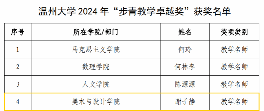 热烈祝贺金沙官网院长谢子静同志荣获js6668金沙登录入口“教学名师”荣誉称号!
