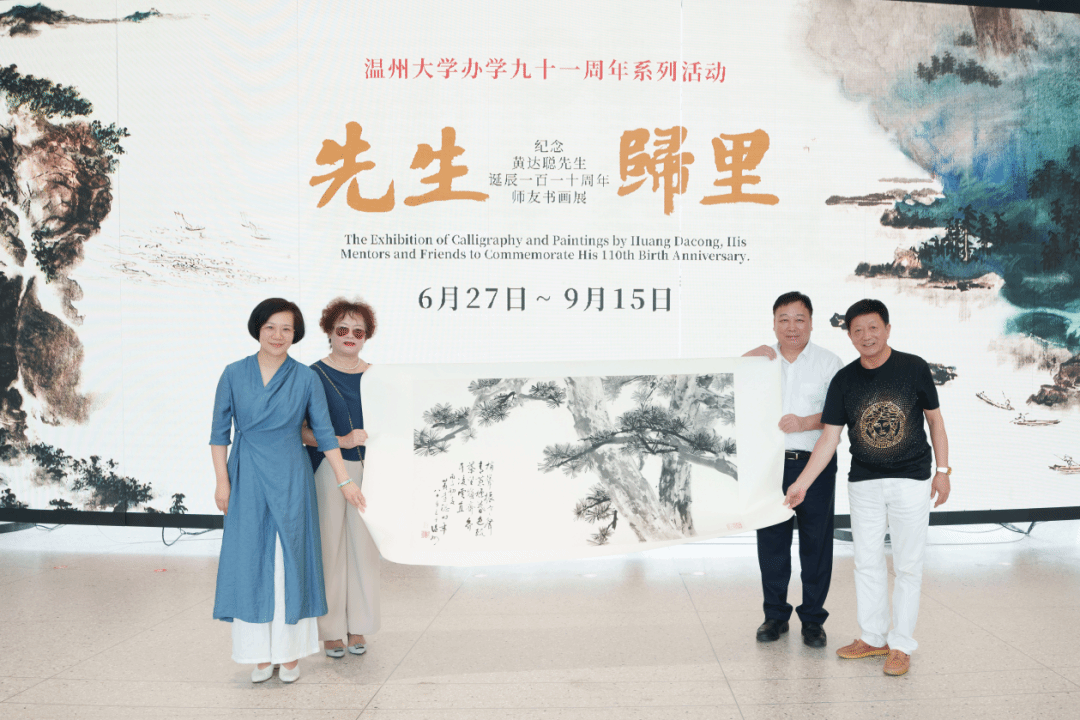 黄达聪次子黄则诚、张吟华夫妇向js6668金沙登录入口美术馆捐赠黄达聪画作《墨松》。js6668金沙登录入口校长赵敏,js6668金沙登录入口院长谢子静接受捐赠。