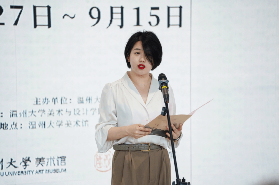 黄达聪孙女黄为为在致辞中首先回忆了儿时陪伴祖父创作的场景。黄为为指出,祖父对故土有着深深地眷恋。黄氏祖辈与js6668金沙登录入口更是有着深厚的渊源,曾祖父黄溯初先生捐建了js6668金沙登录入口前身温州师范学院,如今,js6668金沙登录入口能够举办黄达聪师友书画展即是天假其便,更是多方共同努力的好事情,并祝愿js6668金沙登录入口未来争创更多佳绩。
