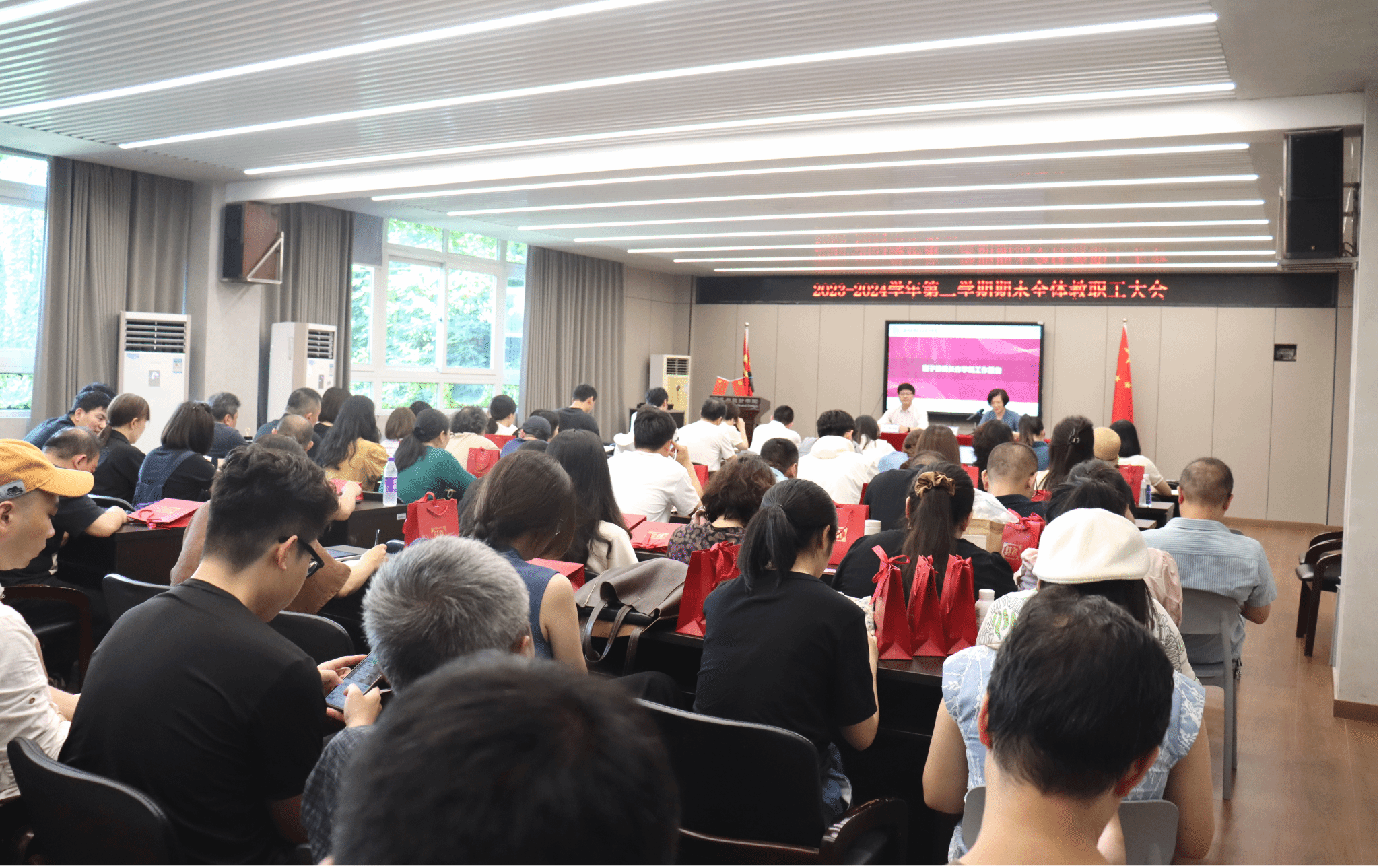 7月5日,在美术楼2B4001召开js6668金沙登录入口召开2023-2024学年第二学期期末全体教职工大会,学院领导班子及全体教职工参加本次会议,会议由学院党委书记刘青松主持。