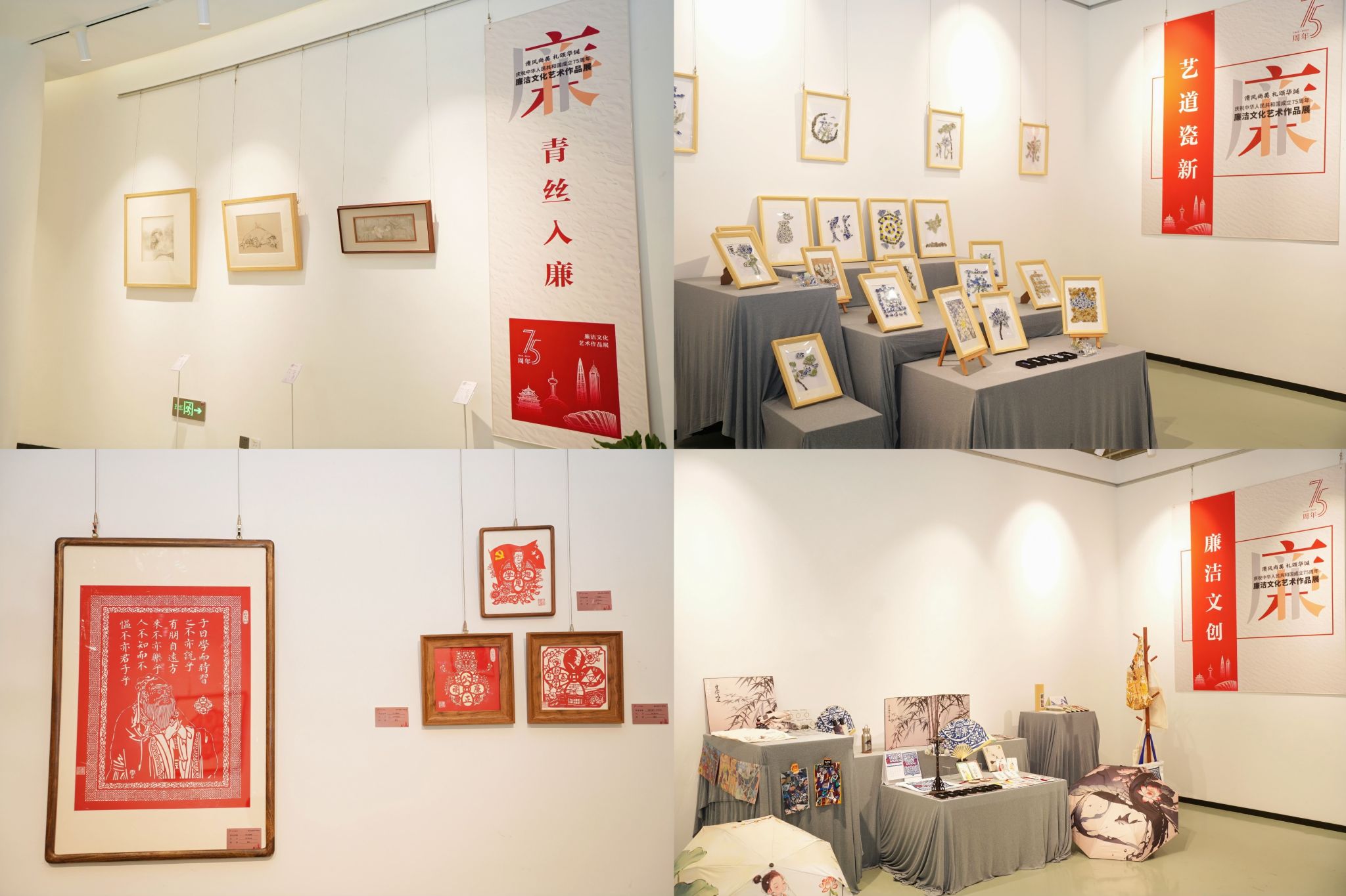 本次展览共遴选出15个创作主题,自发布征集以来,吸引了全校各学院、各专业师生的踊跃参与,展品集结了廉洁画作、书法、AI海报、三行诗、四格漫画、非遗发绣、文创等各类作品近300件。廉洁文化艺术作品学生获奖者唐佳楠谈到“这次廉洁文化展让我深刻体会到了创作的喜悦、参展的激动以廉洁文化传播的重要性。我们青年一代定将以时代为笔、青春为墨、历史为纸、文化为魂,潜心创作了更多优秀作品。”