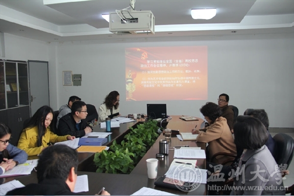 3月14日,js6668金沙登录入口召开党务工作例会暨理论中心组(扩大)学习会议,深入贯彻落实全国(全省)高校思想政治工作会议精神。学院领导班子成员,党总支委员,各支部书记及科室负责人等参加了会议。会议由院党总支书记张丽萍主持。 在学院党务例会上,张丽萍传达了学校党务工作例会主要精神,着重强调会上提出的要扎实推进理论武装工作、大力加强基层党组织建设、严格落实从严治党的两个责任、努力打造高水平的干部队伍、继续提升思想政治工作以及切实维护校园安全稳定等。张丽萍对2017年学院党建工作做了重要部署,从加强基层组织建设、加强思想政治工作、深化学风建设、探索大学生创新创业机制、凝练校园文化品牌等方面着手,重点抓好25项具体工作,为推进学院发展提供坚强有力的保障。 在中心组理论学习扩大会上,与会全体积极献言献策,就深入贯彻落实全国(全省)高校思想政治工作会议精神展开大讨论。会议认为,思想政治工作如何创新方式方法、创新机制载体尤为重要。会议提出,要建立回归本真的师生关系,使师生关系始终建立在“教”与“学”为基础的知识和技能上,避免师生关系被“工具化”;要充分利用校园文化建设的各类载体开展润物无声的教育工作,如从景观建筑“溯初亭”来探索温大的历史故事;要挖掘日常生活的典型案例,保有思想政治教育的真实与丰满。会议还提出,思想政治工作根本上是做人的工作,只有紧紧围绕学生、关照学生、服务学生,要努力在全院形成立德树人的合力。会议认为,思想政治工作进课堂尤为必要,要将“思政课程”向“课程思政”转变。要推动专业课程去挖掘更多的精神养料,将传统文化如书画、建筑、服饰等蕴含的德育意识融入专业教学,增加专业课程的厚度与温度;要利用学生艺术采风等实践课程,去深刻理解德育教育的历史和现实意义;要充分挖掘温州特有的传统文化项目,作为专业德育课程的丰富教育资源。