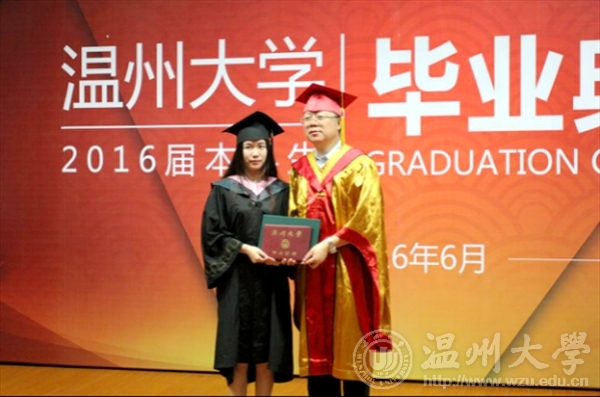 省优毕业生12级服装设计与工程的姚玉骏代表2016届毕业生发言,她回忆了在温大的学习与生活,表达了毕业生们即将离开母校的不舍与感激之情。