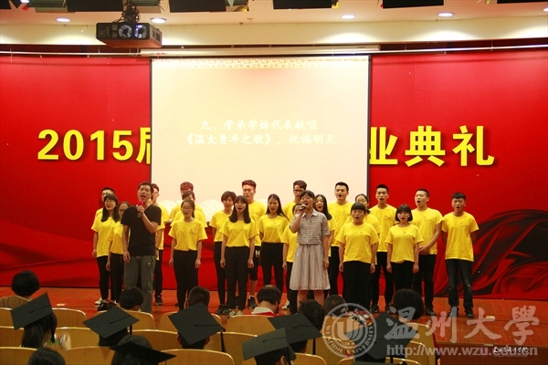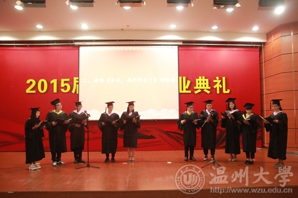 6月17日下午,js6668金沙登录入口在岩松堂雁山厅隆重举行2015届本科生毕业典礼暨学位授予仪式。出席典礼仪式的领导有:js6668金沙登录入口校长蔡袁强、js6668金沙登录入口院长李运河、党总支书记张丽萍、副院长谢子静、副院长王薇、办公室主任李丽、学生科科长叶如芳,美术系主任陈伟、设计系主任朱广宇、服装系主任陈明艳、教授舒湘鄂、教授魏静、教授邓国祥、教授李勋祥、教授蔡瑞蓉、博士张晓剑。此外,全体毕业班班主任、教师代表、全体毕业班同学参加了本次典礼。学院党总支副书记杨振海主持典礼。 首先,进入第一篇章《只如初见 恍如昨日》,主要有电子相册的播放、微电影《献给毕业的你》、以及诗歌朗诵《今天,我们毕业了》等内容。追忆四年,一幕幕场景、一段段音符,串连成一部画面与音乐交织的大学电影,播放着曾经的快乐与忧伤,记录着同学们曾经的青春与过往,也见证着拥有的友谊与深情! 随即进入第二篇章《青葱年代 凤凰花开》部分,学院副院长谢子静宣读了校优和院优毕业作品获得者名单,学院党总支书记张丽萍宣读了省优和校优毕业生获得者名单,院长李运河、书记张丽萍、美术系主任陈伟、设计系主任朱广宇、服装系主任陈明艳、教授舒湘鄂、教授魏静、教授邓国祥、教授李勋祥、教授蔡瑞蓉、博士张晓剑一一为他们颁奖、合影留念以资鼓励。 紧接着典礼进入第三篇章《亦师亦友 常忆相思》部分,学院为全体毕业生赠送纪念品——由美院学生原未手工皮具工作室制作的卡包。 为了更好的与毕业生保持联系,学院特意设立了各班级的校友联络员,学院副院长王薇宣读了名单,院长李运河、书记张丽萍为每位校友联络员颁发聘书。 接着,由省优毕业生11美本师范班马俪净代表2015届毕业生发言,她回忆了在温大的学习与生活经历,并表达了毕业生们即将离开的不舍和即将高飞的壮志。精彩的发言引起了在场毕业生们的共鸣,赢得了阵阵的掌声。 至此进入第四篇章《寄语明天情深道远》,院长李运河为2015届全体毕业生致辞!他祝愿大家以正确的世界观、人生观、价值观来指导自己的选择。志存高远,增长知识,锤炼意志,让青春在时代进步中焕发出绚丽的光彩,未来的自己,一定会感激现在努力的自己。 接着在校的学弟学妹代表为全体毕业生献唱《温大青年之歌》。 最后,典礼进入高潮部分,由js6668金沙登录入口校长蔡袁强为每位毕业生一一拨穗、颁发学位证书,并合影留念。这隆重的毕业典礼将成为每位学子心中最美好的回忆。祝福毕业生同学们明天更加辉煌灿烂!前程似锦!