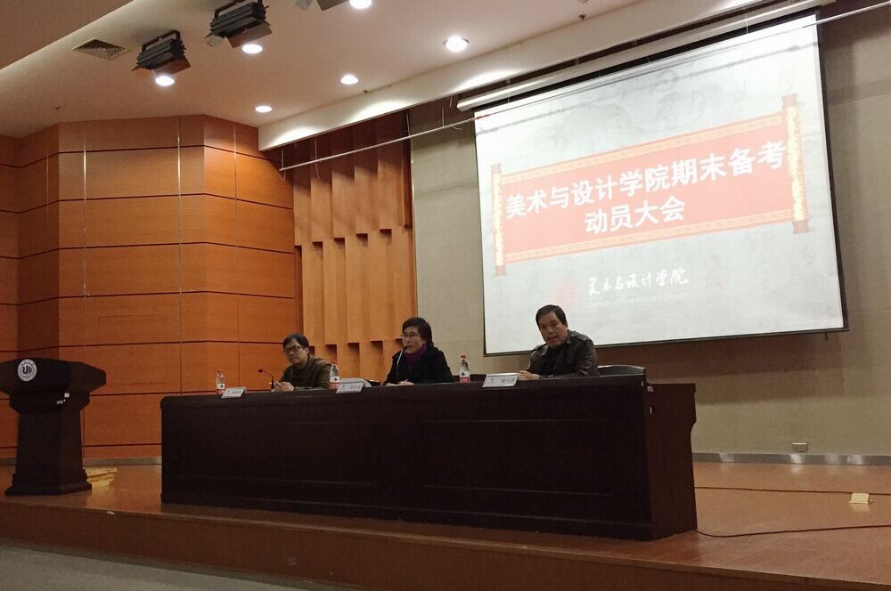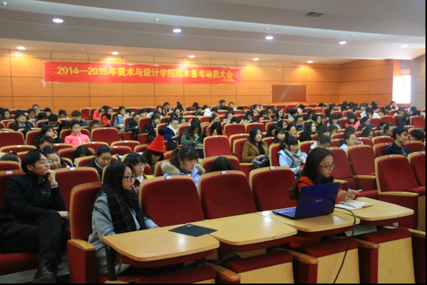 为了激励学生主动复习,自信迎考,诚信应考,营造良好考风学风。1月7日下午,js6668金沙登录入口在南校雁山厅举行了2014-2015学年第一学期期末备考动员大会。出席此次会议的有学院党总支书记郑彩莲、副院长蔡可群和副书记杨振海,以及全体大一新生与老生代表。杨振海副书记主持会议。首先,蔡可群副院长围绕学院“学风建设年”的实施背景,结合艺术专业的学习特点,从学习态度、学习方式与学习方法等角度阐述了学风建设在人才培养过程中的重要性,并强调考风是学风建设的集中体现,也是彰显公平竞争的具体体现。随后,郑彩莲书记针对期末备考与诚信考风做了严爱相济、语重心长的指导讲话。她指出,诚信作为新时期社会主义核心价值观的重要内容,是衡量个人品行优劣的道德标准之一。她结合具体案例从考风形势预判、考风违纪预案处置、考风信息及时传递、诚信考风人品考量等方面强调了“诚信考试是硬道理”的理念。她强调党支部、团委、班委要做好诚信考风的宣传工作,更要发挥模范带头作用,以良好的考风促学风。她希望同学们能够自觉遵守考场纪律,让考场成为一片公平角逐、展现实力的净土。她更希望能够看到一个大家都你追我赶,求知若渴的美院,而每一个置身其中的人都能感到欣慰和自豪。最后,杨振海副书记勉励同学们在期末考试中,不仅要交出专业知识的水平之卷,更要交出诚信的品行之卷。