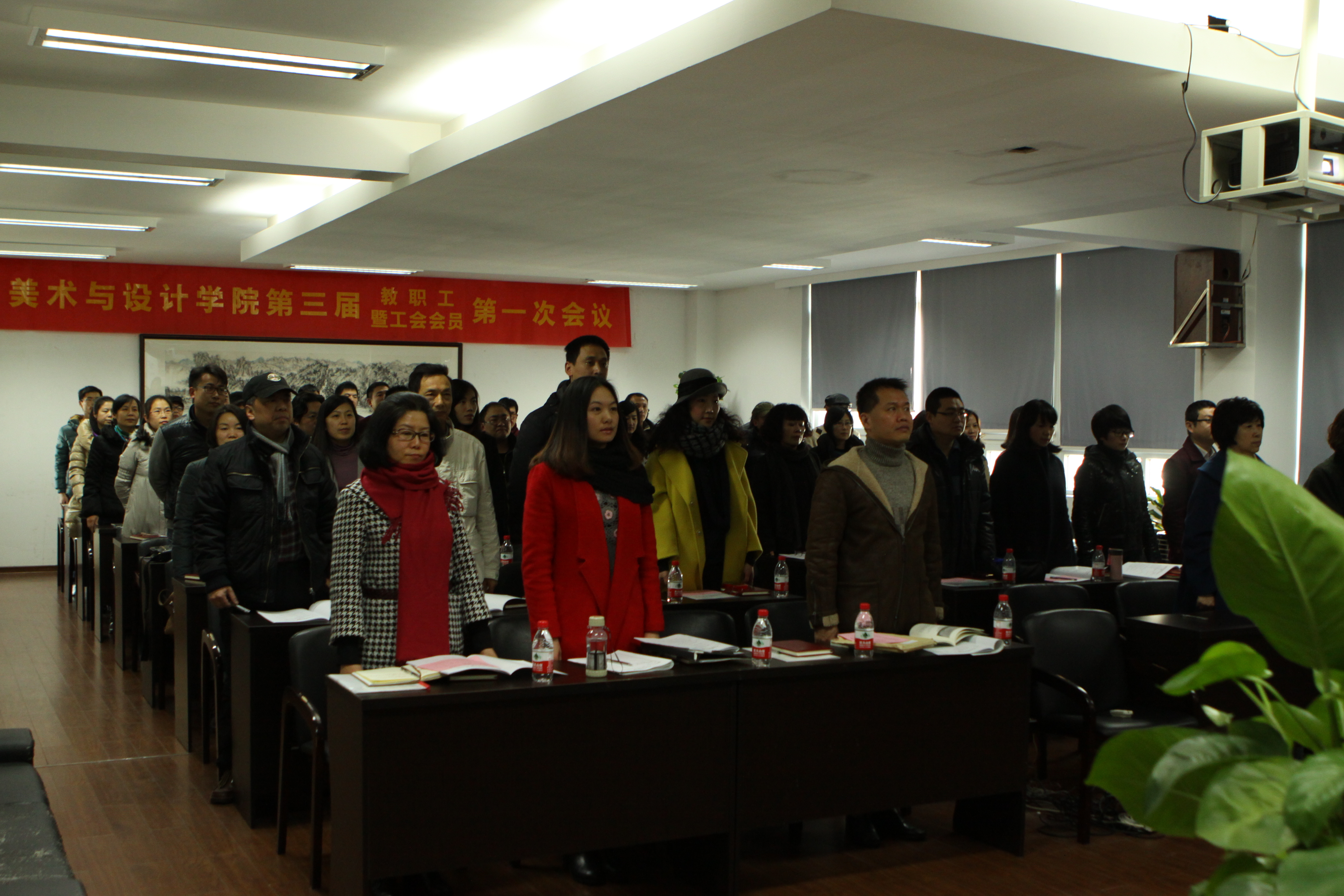 1月14日下午,js6668金沙登录入口第三届教职工暨工会会员第一次会议在2B4001会议室隆重召开。在庄严的国歌声中,金沙官网教代会拉开了序幕,会议开幕式由蔡可群副院长主持。