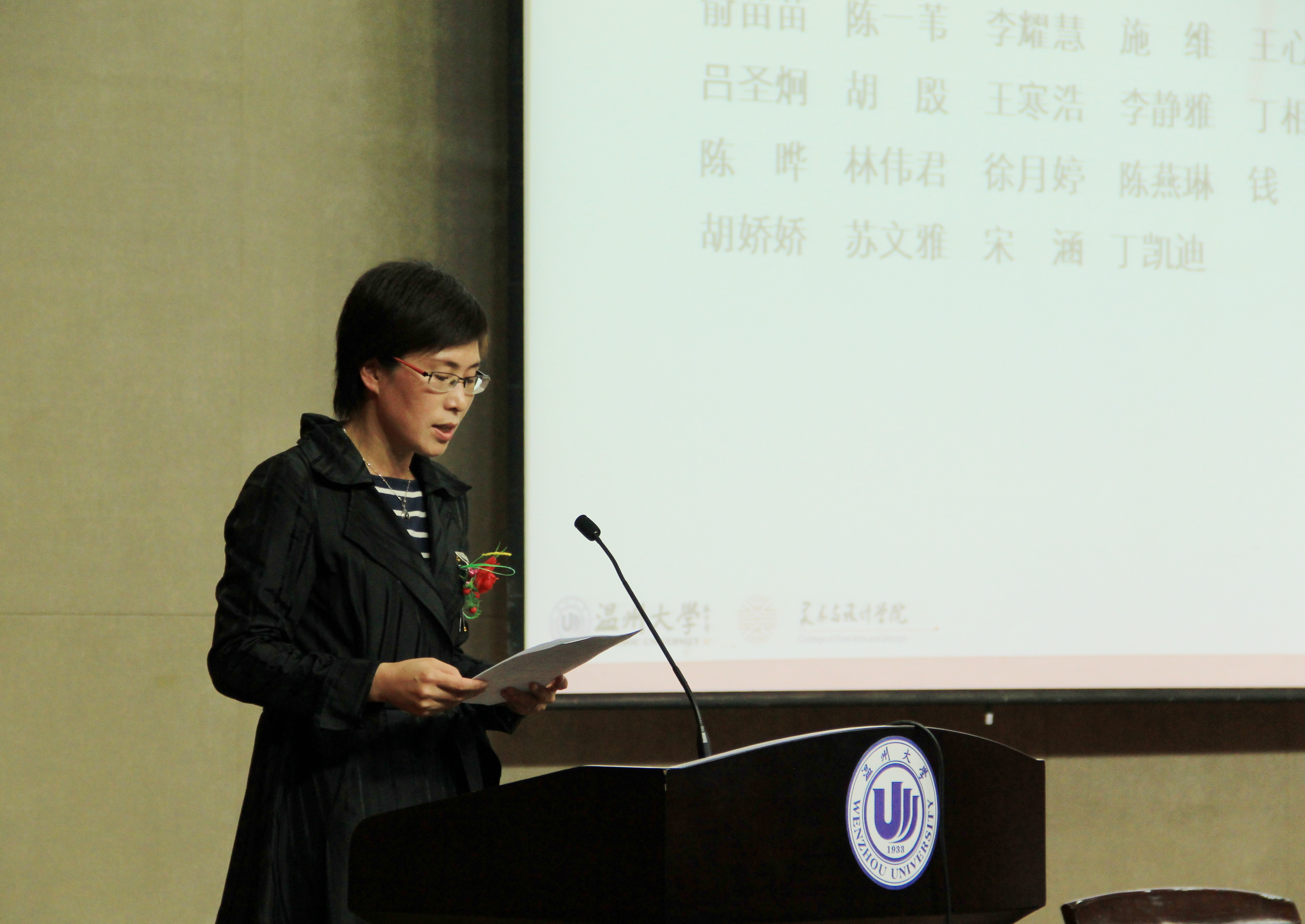 在开启新一届的“赛季风”之前,大会回望过去一年的辛苦付出与满满收获,表彰在上一届赛季风取得优异成绩的同学。2014年度大学生创新创业奖表彰大会在激昂的乐曲中开始。首先由蔡可群副院长代表组委会宣读了第六届“赛季风”活动孵化的优秀作品名单,其中,国际国家级奖项3项,国家学会级和省级奖项7项,省学会级和市级奖项23项,此外还有校级奖项83项。作品内容涵盖美术、服装、设计、创新创业四个方面,包括鞋靴、服饰、书画、摄影、海报、广告、创业项目等等。一件件精美的作品后面是参赛同学与指导老师的智慧、创意与汗水。