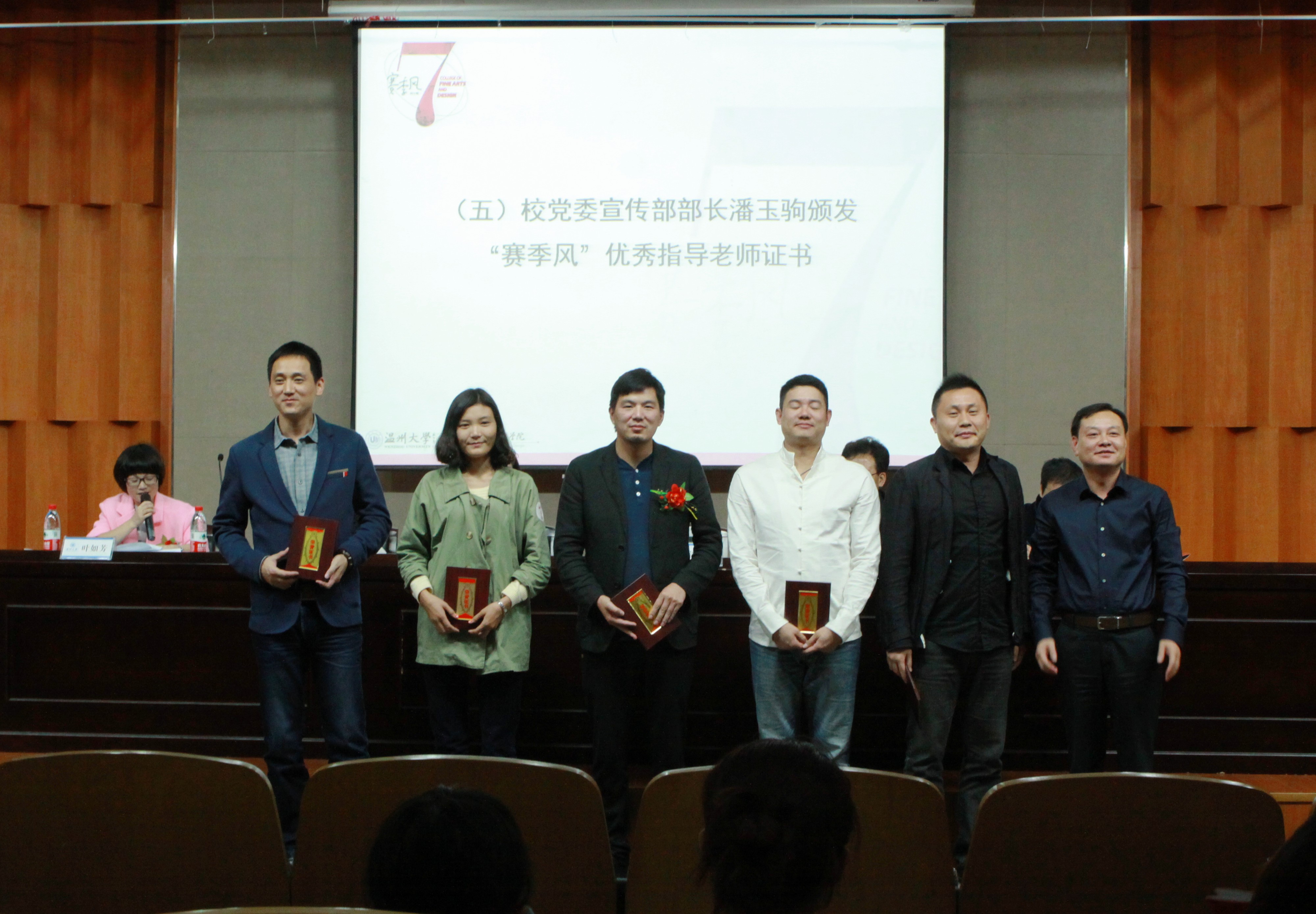 运动的赛场刚刚偃旗息鼓,艺术的赛场即将风起云涌。11月5日下午,js6668金沙登录入口第七届“赛季风”启动仪式暨2014年度大学生创新创业奖表彰大会在岩松堂雁山厅隆重举行。校党委宣传部部长潘玉驹、校团委副书记屠霁霞、js6668金沙登录入口院长李运河、党总支书记郑彩莲、副院长蔡可群等领导出席大会,参会的还有“赛季风”各分赛事指导老师、组委会成员,全体参赛学生及2014级新生。