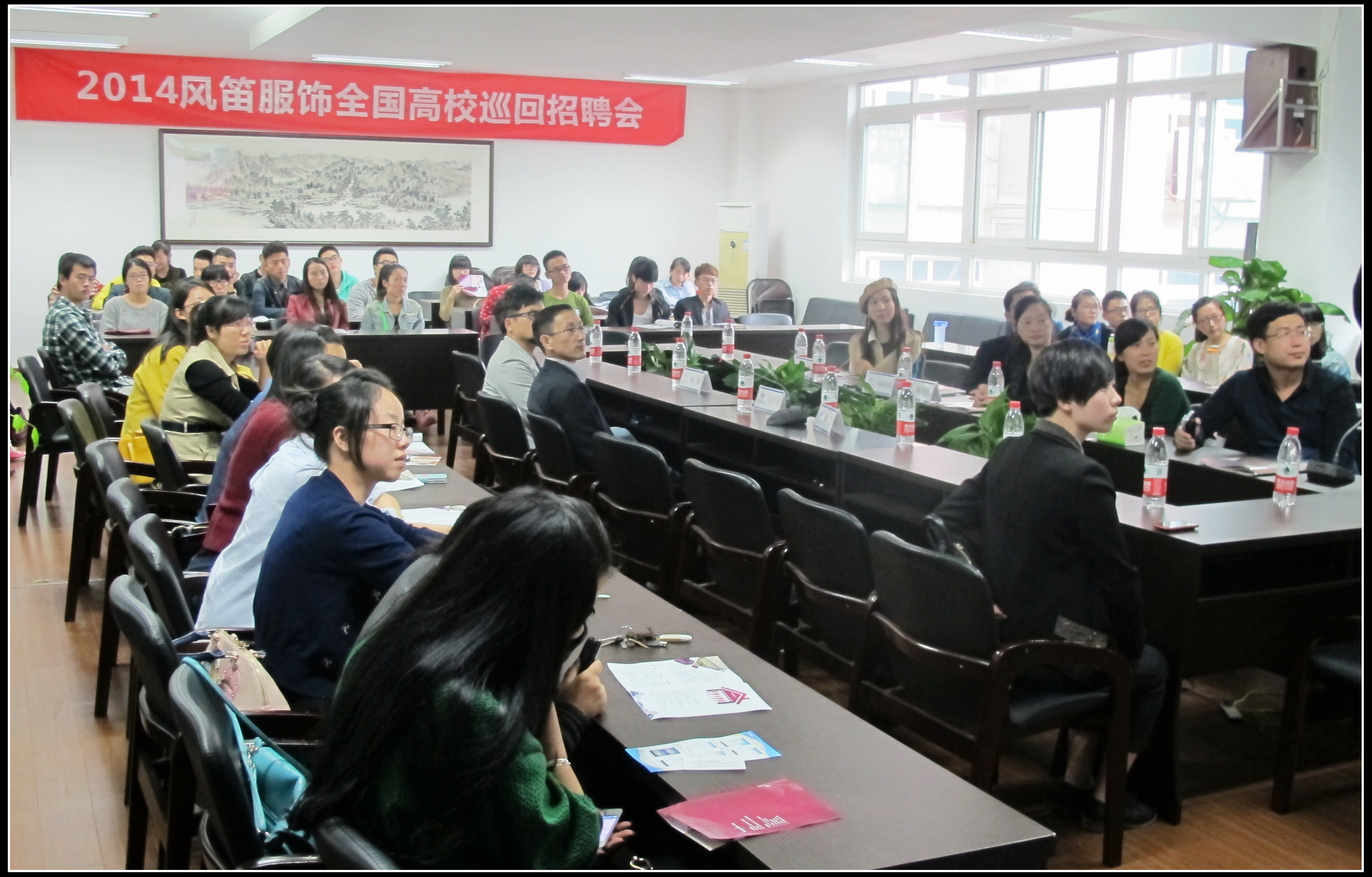 10月30日,风笛服饰全国高校巡回招聘会在js6668金沙登录入口于2B4001进行首战宣讲。美院党总支副书记杨振海、“风笛”企业高层领导文甲平、企划部经理杨毅、培训部经理陈宁等相关工作人员出席的活动。10级服装系全体学生参加了本次招聘会。