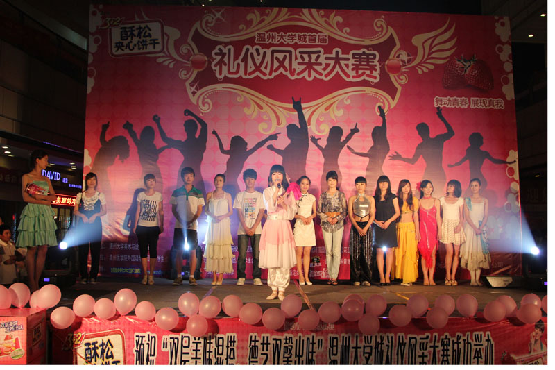 2011年5月7日晚上6点半,在高教园区商务中心举办js6668金沙登录入口第一届礼仪风采大赛人气赛,本次大赛由js6668金沙登录入口主办,康师傅3+2苏打夹心饼干、果麦等赞助。在往来人流中现场搭起的舞台吸引广大路人前来观看,并期待选手们的精彩亮相。