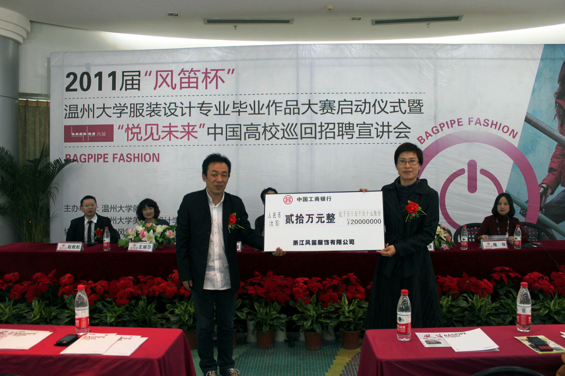 2010年11月21日上午九点,由js6668金沙登录入口就业处和js6668金沙登录入口联合主办的2011届“风笛杯”js6668金沙登录入口服装设计毕业作品大赛启动仪式暨“悦见未来”中国高校巡回招聘宣讲会,在大学生活动中心茶吧隆重举行。js6668金沙登录入口党委副书记牟德刚、js6668金沙登录入口就业工作处处长孙广福、js6668金沙登录入口党总支书记郑彩莲、浙江风笛服饰有限公司总经理王建瓯、首席设计师王丽莎、人资中心总监赵舰航出席了启动仪式,会议由js6668金沙登录入口服装设计教研室主任陆琰主持。参加本次活动的还有js6668金沙登录入口全体服装系学生。 在最先开始的启动仪式中,js6668金沙登录入口服装系副主任张振岳首先介绍了2011届js6668金沙登录入口服装设计专业毕业设计的具体情况。随后,js6668金沙登录入口校党委副书记牟德刚向浙江风笛服饰有限公司赠送了“校企合作定点单位”铜牌,浙江风笛服饰有限公司总经理王建瓯接过了铜牌,并代表浙江风笛服饰有限公司表示了感谢。浙江风笛服饰有限公司总经理王建瓯向js6668金沙登录入口赠送了20万现金支票,以赞助2011届“风笛杯”js6668金沙登录入口服装设计毕业作品大赛,js6668金沙登录入口党总支书记郑彩莲代表学院表达了感谢。 在随后的讲话中,浙江风笛服饰有限公司总经理王建瓯向大家介绍了浙江风笛服饰有限公司的基本情况。他说,公司于1999年成立,以富有前瞻性的战略为指向、以年轻强大的设计技术研发团队和战略营销管理团队为依托,以高覆盖的媒体支持和指导为保障,使销售业绩快速大幅度增长,实现了企业员工、加盟商和消费者的“三赢”。浙江风笛服饰有限公司本着尊重人才的原则,关注校园优秀毕业生,设立了风笛奖学金,为学子提供帮助,此次js6668金沙登录入口服装设计毕业作品大赛赞助了js6668金沙登录入口20万,并想以此为契机,与js6668金沙登录入口建立长期合作友好关系。 js6668金沙登录入口党总支书记郑彩莲首先对来宾表示了热烈的欢迎。她说,浙江风笛服饰有限公司企业代表来我校共商育人大计,探讨专业发展前沿,这是我校在实施“引进来,走出去”校企合作战略取得的又一次成就,是有针对性的培养一线实用型技术人才的重要举措,有利于让学生在校所学与企业实践有机结合,实现优势互补、资源共享,提高技能型人才的培养质量,让学生早日成为高层实用型技术型人才。她认为本次js6668金沙登录入口服装设计毕业作品大赛的成功启动,是一次校企“零距离”对接的成功实践,是开放式办学的又一次大胆创新,为学生在未来的就业市场上进一步提升竞争优势提供了重要支持,这标志着js6668金沙登录入口在校企合作办学、开放式办学方面跨入了更高,更新的平台。她同时指出,此次大赛检验了学生的专业知识运用能力,培养了学生的艺术创新精神和充分发挥他们的艺术创造力和想象力。其二,本次大赛提倡团队创作,有利于培养学生的团结合作精神与相互协调能力。这种团队精神与协调能力对同学们未来的就业和工作,以至于一生的发展都非常重要。其三,本次大赛体现了校企合作、注重市场接轨的人才培养模式,符合学校的人才培养目标,也是特色所在。她同时强调本次大赛即要注重比赛质量,也要提高影响力,让更多同学得到更全面的锻炼,提高大赛本身的社会知名度和美誉度。她最后预祝本次大赛将取得圆满成功。 启动仪式结束后,浙江风笛服饰有限公司举行了“悦见未来”中国高校巡回招聘宣讲会,并邀请了从js6668金沙登录入口毕业的现任浙江风笛服饰有限公司设计师雷小芳、黄成鹏和大家分享了在风笛的工作经历,并现场回答了同学的提问。最后,在大四学子们投简历,预约面试的火热氛围中,结束了今天的宣讲会。作为 js6668金沙登录入口2011届毕业生供需洽谈会的一个亮点项目,温州电视台、温州都市报和商报都现场采访了本次活动。