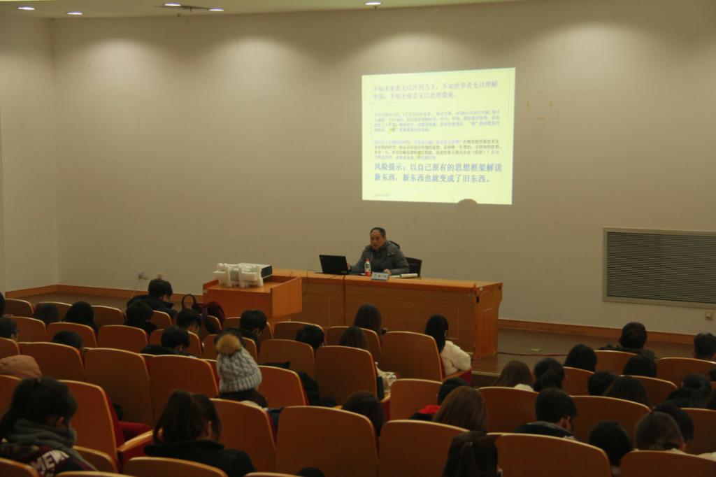 12月20日下午,js6668金沙登录入口在步青厅开展本学期第三次形势与政策课,js6668金沙登录入口教师教育学院党总支书记杨立淮作题为“构建网络安全生态环境——大数据时代的思考”的形势与政策讲座,js6668金沙登录入口17级全体同学参加讲座。