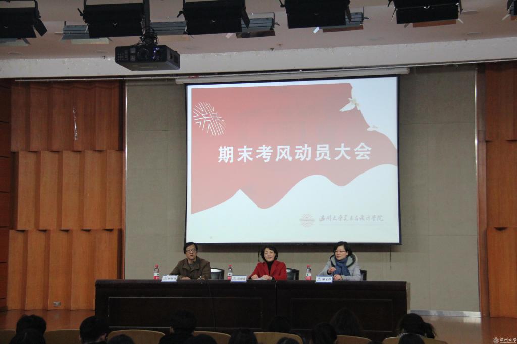 张丽萍书记在动员讲话中重申了考风考纪的重要性和作弊的危害性,她强调学习在于平时的点滴积累,来不得弄虚作假,作弊不能弥补学习上的漏洞,而是一种自欺人人的行为。张丽萍书记还鼓励同学们认真备考,争取考出好成绩。她强调:“大学里的每一次考试都是接受考核认证自我的途径,加强考风建设营造公平的考试氛围,既是每个同学的愿望也是每个同学应该肩负的责任。所以希望同学们在这次考试中能诚信做人,亮出真实的成绩,展现真实的自己。”杨振海副书记根据学生手册相关条例告诫同学们一定不能碰这个底线,在考试过程中不仅仅要交出反映专业知识水平的考卷,更重要的是在考试中要交出诚信的品行之卷。