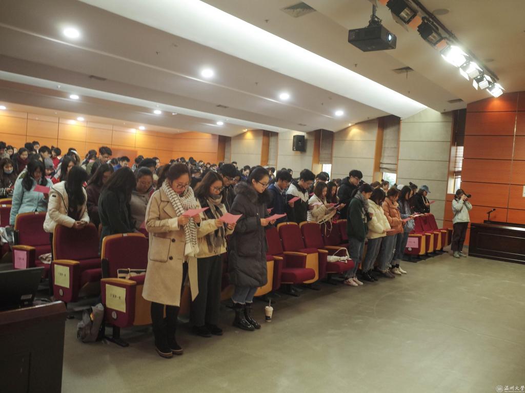 2018年1月10日下午,js6668金沙登录入口在雁山厅召开2017-2018学年第一学期考风动员大会,js6668金沙登录入口党总支书记张丽萍、副院长谢子静出席大会,17级全体同学参加会议,大会由学院党总支副书记杨振海主持。 张丽萍书记在动员讲话中重申了考风考纪的重要性和作弊的危害性,她强调学习在于平时的点滴积累,来不得弄虚作假,作弊不能弥补学习上的漏洞,而是一种自欺人人的行为。张丽萍书记还鼓励同学们认真备考,争取考出好成绩。她强调:“大学里的每一次考试都是接受考核认证自我的途径,加强考风建设营造公平的考试氛围,既是每个同学的愿望也是每个同学应该肩负的责任。所以希望同学们在这次考试中能诚信做人,亮出真实的成绩,展现真实的自己。”杨振海副书记根据学生手册相关条例告诫同学们一定不能碰这个底线,在考试过程中不仅仅要交出反映专业知识水平的考卷,更重要的是在考试中要交出诚信的品行之卷。 17级全体同学在学生代表的引领下宣誓,承诺端正考试态度认真复习积极备考。 学生处吕乐老师进行大学生文明修身考风考纪专题讲座。学生处吕乐老师通过精彩的演讲和亲切的互动,加深了同学们对考试作弊的危害的理解,相信同学们也一定会用真实的成绩证明自己的实力,成为一名诚实守信的大学生。 大会还总结了本学期学风考勤和晚自习考勤情况,与会领导对本学期优秀纪检委员进行了表彰。