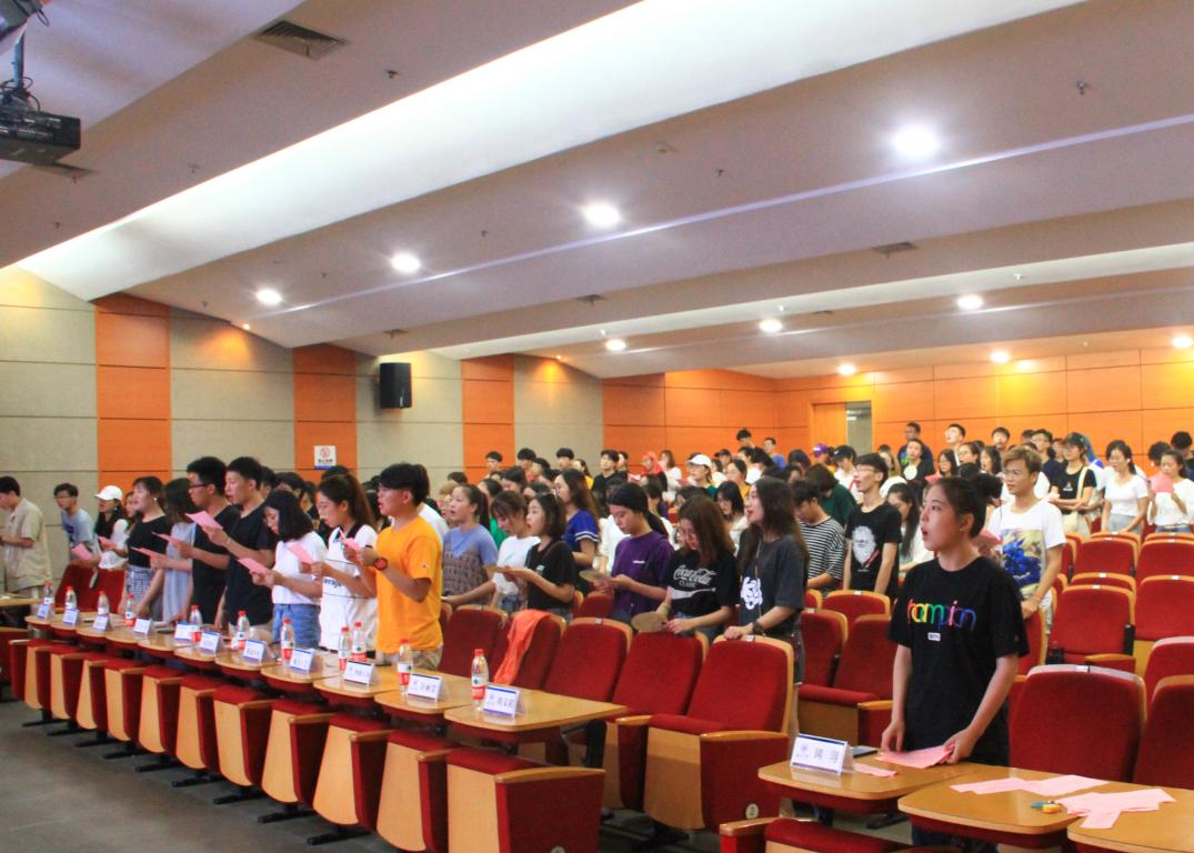 2018年7月4日下午,js6668金沙登录入口在雁山厅召开2017-2018学年第二学期考风动员大会,参加本次会议的有学院党总支副书记杨振海以及17级全体同学,大会由js6668金沙登录入口学生科叶筱卉老师主持。