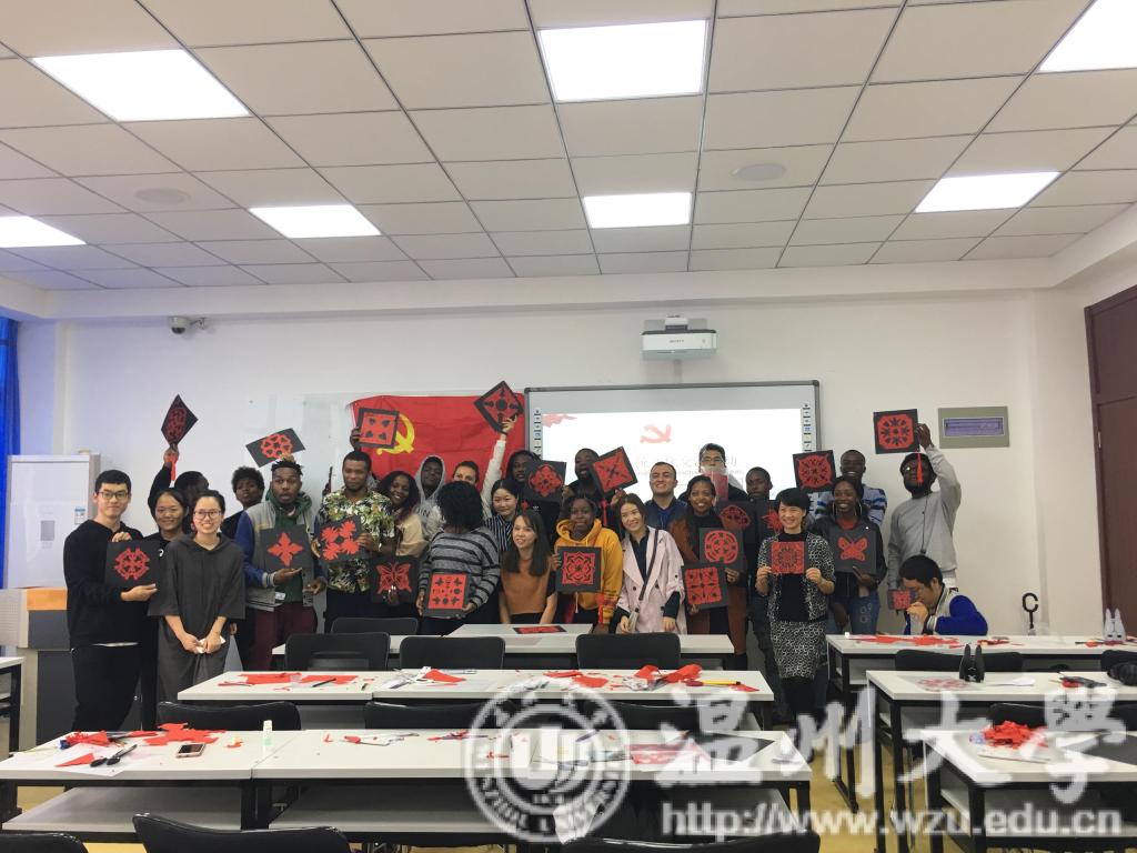 为了传承并发扬中国传统文化,丰富留学生校园文化生活,2018年10月22日下午,js6668金沙登录入口结合自身特色,与js6668金沙登录入口商学院合作,一同在北校国际楼开展了以中外剪纸文化交流为主题的活动。出席本次活动的领导有js6668金沙登录入口党总支副书记杨振海、商学院党总支副书记刘开练、商学院国际部主任王洪斌以及商学院教师吴海蓉。 活动的开始,商学院的吴老师首先向留学生们介绍了本次活动的目的与意义,介绍前来开展活动的美院研究生代表们,同时也对在场的留学生们的积极性表示了充分肯定,尤其是第一次参与学院举办的课外活动的18级新生。老师提到,希望同学们能够好好表现,争取在此次剪纸活动中有所收获,了解剪纸艺术。 此次,带领留学生们剪纸活动由js6668金沙登录入口研究生党支部主教。美院研究生代表徐苗苗为大家讲解了中华剪纸文化的历史内涵,介绍了剪纸中“福”和“寿”的具体意义,以及藏在火红的剪纸图画背后的中国老百姓们对生活的美好向往。生动的解说让留学生们沉迷其中,同时留学生们也忍不住赞叹中国传统文化的博大精深。接下来是动手环节,留学生们在美院研究生的带领和指导下,按剪纸的基础步骤一步步进行,每个人还积极思考,发散思维,加上了自己对剪纸的理解,进行了图案的设计与创作。留学生们完成了一幅幅形象生动的剪纸作品,同时也提高了动手能力,初步学习了中国传统艺术之剪纸。 活动的最后,美院研究生代表选出了留学生剪纸作品的一二三等奖,美院的研究生和留学生一同在领导老师带领下,参观商学院一楼新落成的留学生活动中心,颁发奖品并合影留念。留学生们脸上洋溢的笑容,展示着他们对中国文化体验交流活动的浓厚兴趣与快乐。希望美院的研究生和商学院多多交流,希望中华传统文化能一直传承下去。