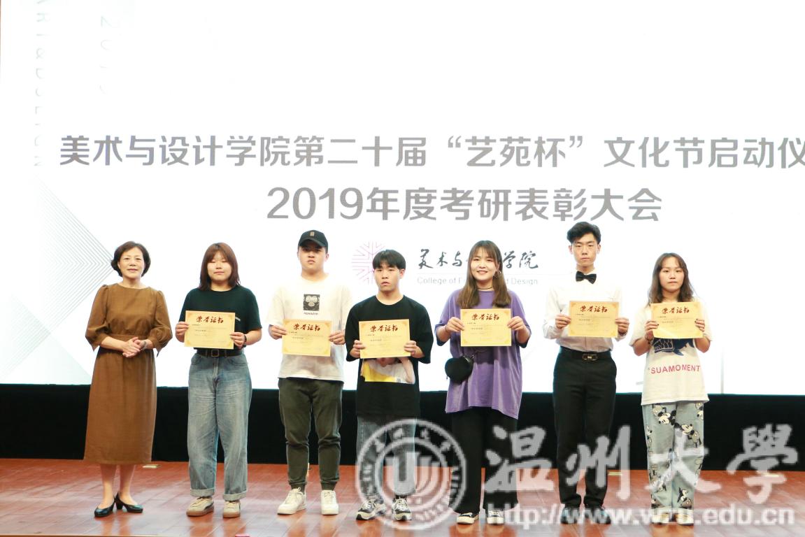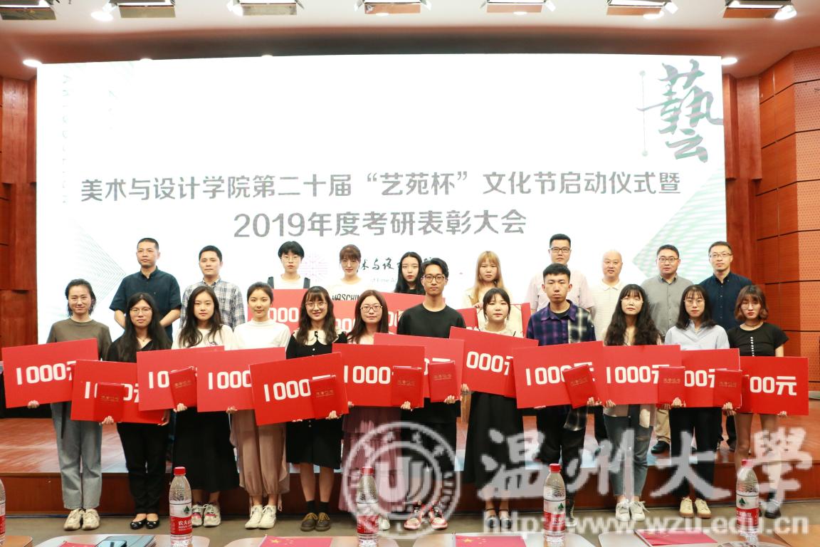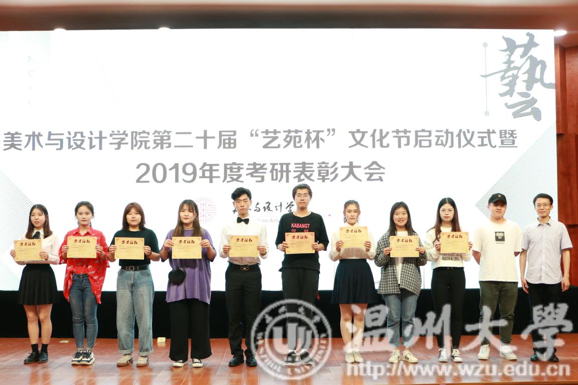 2019年4月24日下午,js6668金沙登录入口第二十届艺苑杯文化节启动仪式暨2019年度考研表彰大会在岩松堂雁山厅顺利举行。莅临本次启动仪式的领导有校党委宣传部副部长冯方盛,校教务处副处长胡瑜,校学工部副部长、学生处副处长高红星,校就业处副处长应中,校团委副书记魏一,超豪学区党委副书记李祖祥,js6668金沙登录入口院长李运河,党总支书记张丽萍,副院长张晓剑。参加本次活动的还有js6668金沙登录入口17、18级同学。启动仪式由美院党总支副书记杨振海主持。 本届“艺苑杯”文化节的主题“艺梦为马·不负韶华”源自海子的著名诗篇《以梦为马》,寓意美院学子将艺路梦想作为前进的方向和动力,在有限的年华里为梦想去拼搏。系列活动包括纪念“五四运动100周年”;传承中华优秀传统文化;“融艺优品”创新创业;“艺家人”青年志愿服务;“毕业季”;纪念“建国70周年”等6大篇章共34个子活动。 启动仪式的开场是“五四”主题诗朗诵《青春的火焰》。充满爱国激情的诗歌表达了对100年前五四运动的深切赞颂,激昂的文字让同学们更深切体会到了五四运动的爱国主义精神内涵,进一步增强了同学们的时代责任感和使命感。 张丽萍书记为启动仪式致辞。张书记回顾了“艺苑杯”文化节自2000年创办以来不断发展壮大的历程。“艺苑杯”文化节不仅营造了积极向上、健康文明的校园文化氛围,更成为同学们在实践中锻炼自我成长才的重要平台。张书记鼓励同学们积极参加到“艺苑杯”文化节各项活动中,用激情去创造,用行动去证明,用精品去展现,共同谱写青春绚丽多彩的乐章。 仪式最后,与会领导上台共同启动js6668金沙登录入口第二十届“艺苑杯”文化节。 会议第二项议程是学风表彰。大会宣读了2018年度js6668金沙登录入口“五班十星”名单和2019年度js6668金沙登录入口“考研奖学金”获得者名单。2017-2018学年校级学习标兵陈晨,2019年度美院“考研奖学金”获得者代表15服工班杨怡洁、15美术学一班聂枭雄分别做学习和考研经验分享。2019年js6668金沙登录入口共有16人考取研究生,16人中有5人被浙江理工大学录取、6人被js6668金沙登录入口录取、1人被杭州师范大学录取,还有4人被国外的大学录取。与会领导为他们颁发了奖状和证书并合影留念。 随后,李运河院长作考研动员讲话。他指出了本科阶段学习与研究生阶段学习的不同,并引用毛泽东、曾国藩、习近平总书记等名人轶事鼓励同学们以考研成功的学长学姐为榜样,树立以学习为本的理念,任何时候都不要放弃学习,多读书,读好书,勤实践,多游学,珍惜大学时光,珍惜青春韶华,学好专业知识,实践专业技能,强健体魄,刚强意志,努力奋斗实现人生梦想。 最后,为迎接祖国70华诞,全体师生手中挥动国旗,共同献唱《我和我的祖国》,大会圆满结束。