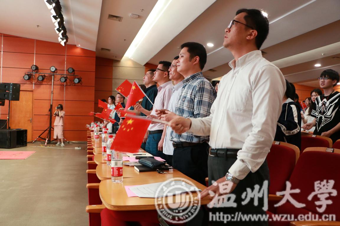 最后,为迎接祖国70华诞,全体师生手中挥动国旗,共同献唱《我和我的祖国》,大会圆满结束。