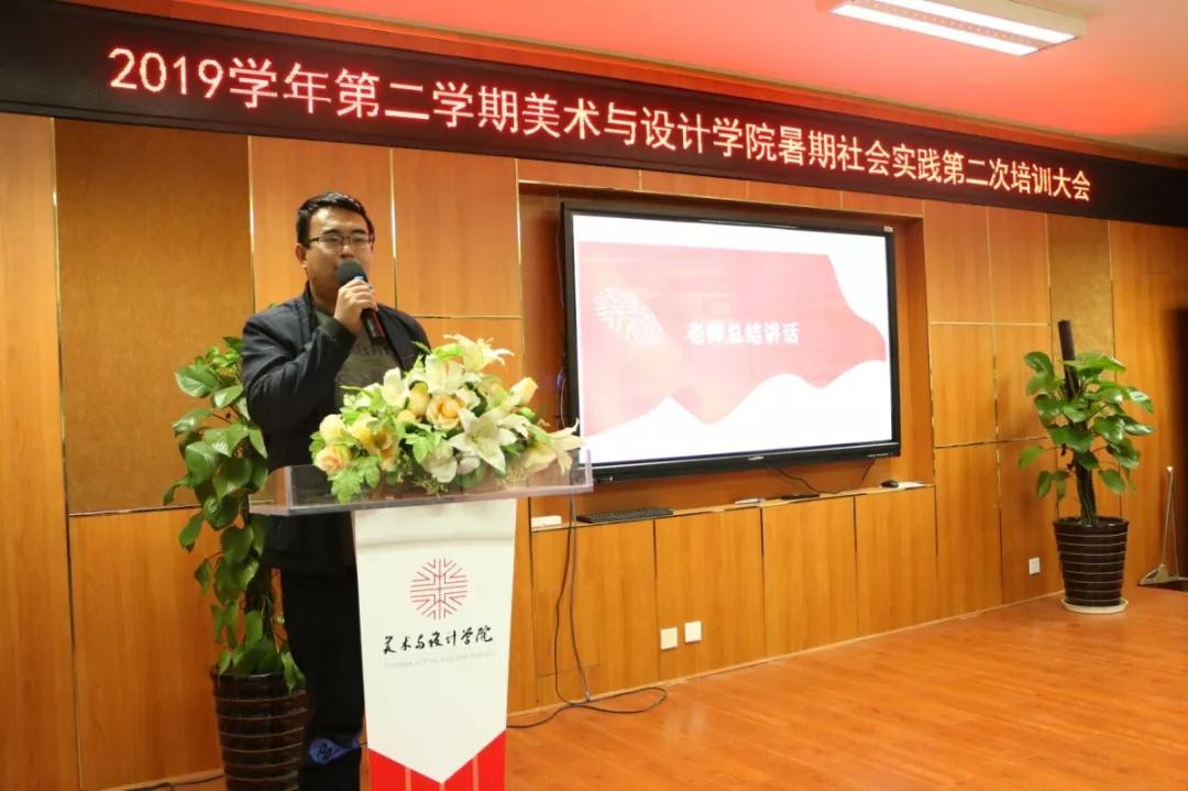 2019年4月28日,美院第二次暑期社会实践培训大会在2B4001举行。参与本次大会的有学生科李雪涛老师、绘暖向南实践队队长王欣雨、蚂蚁行动实践队队长李斯敏、美院团学副主席李颜,还有各个实践队的新任队长和即将要参加暑期社会实践的同学们。
