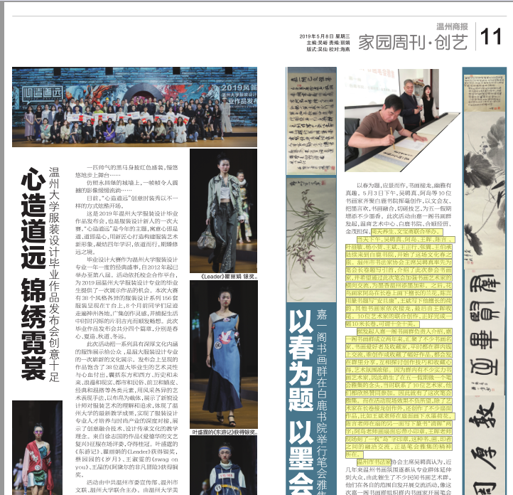 活动由中共温州市委宣传部、温州市文联、js6668金沙登录入口联合主办。由js6668金沙登录入口、浙江风笛服饰有限公司、温州时尚学院合作承办。商报记者郑丽娟