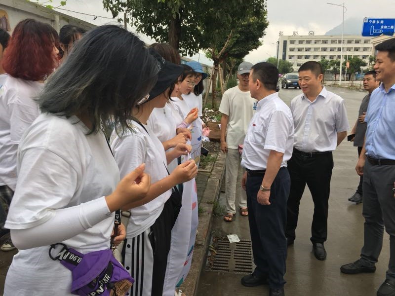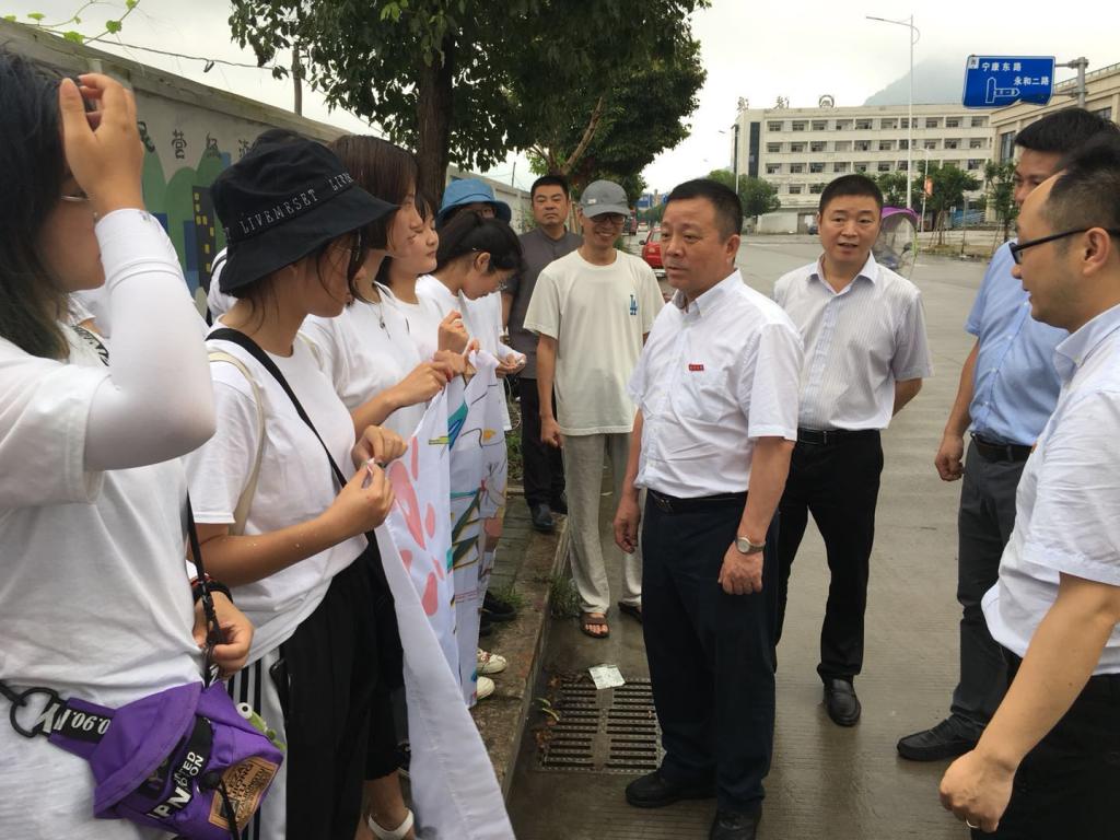 7月14日上午,js6668金沙登录入口党委书记谢树华,乐清市委常委、宣传部部长范晓东一行慰问正在乐清市宁康东路金海湾花苑附近开展“艺绘”暑期社会实践活动的金沙官网师生,党校办主任蔡联群、js6668金沙登录入口党委书记叶正飞、副书记杨丽君、校团委副书记易招娣、副书记丁强、党校办督办科科长陈赞安、乐清市城东街道办事处相关同志陪同慰问。