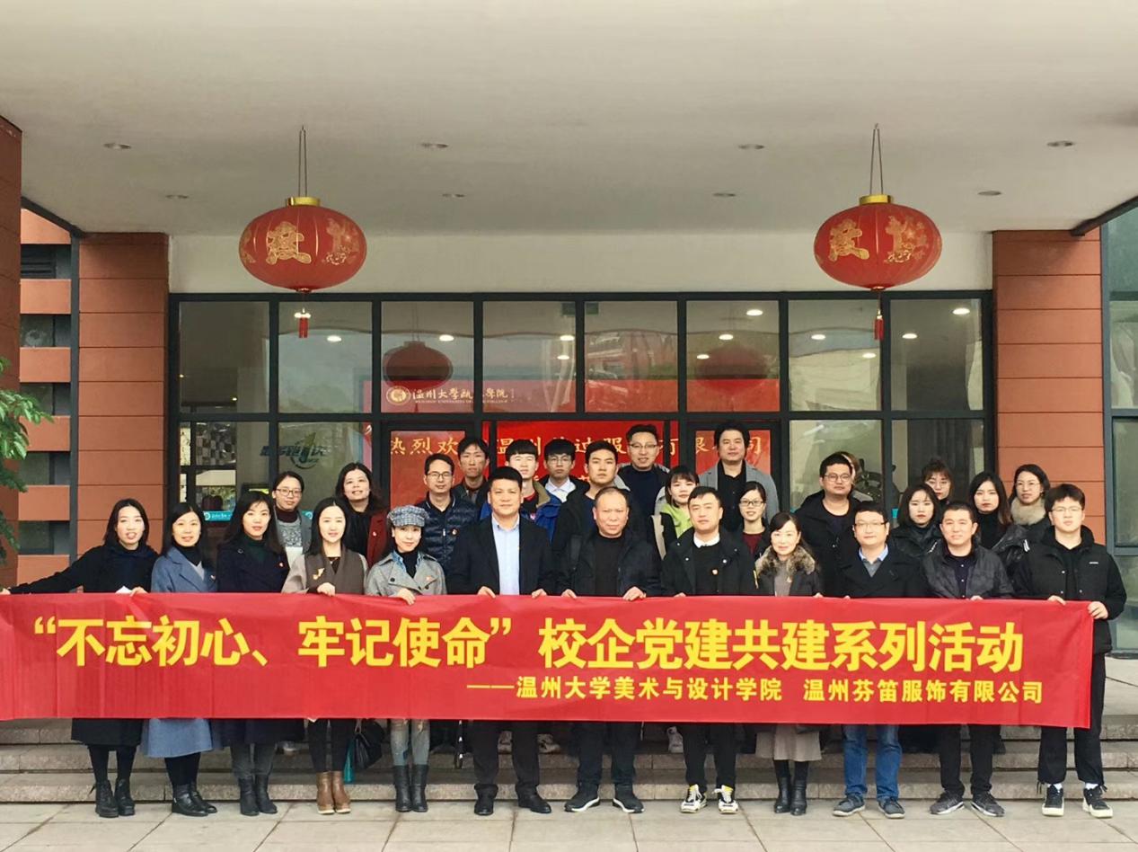 为进一步推进“不忘初心、牢记使命”主题教育,更好地增进校企联动、合作共赢,同时丰富广大职工业余生活,提升美好生活幸福感,12月25日,在新年即将到来之际,js6668金沙登录入口、温州芬迪服饰有限公司开展党建共建系列活动。js6668金沙登录入口党委书记叶正飞、党委副书记杨丽君、副院长顾任飞、服装与服饰设计支部党员师生与温州芬迪服饰有限公司党支部书记朱卫、财务总监朱文华、物流部经理郭忠平及公司党员员工近50人参加活动。