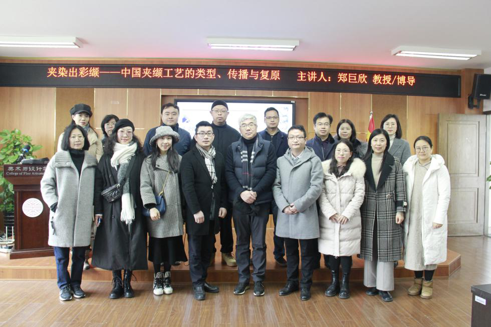 2020年12月17日,为深入贯彻落实js6668金沙登录入口文科大会精神,探索新文科背景下艺术学科发展新路径,js6668金沙登录入口2020年学术月系列活动第三场学术讲座,中国美术学院郑巨欣教授的《夹染出彩缬——中国夹缬工艺的类型、传播与复原》在2B4001开讲。学院副院长胡文超、顾任飞以及学院师生参加讲座,本次讲座由顾任飞副院长主持。
