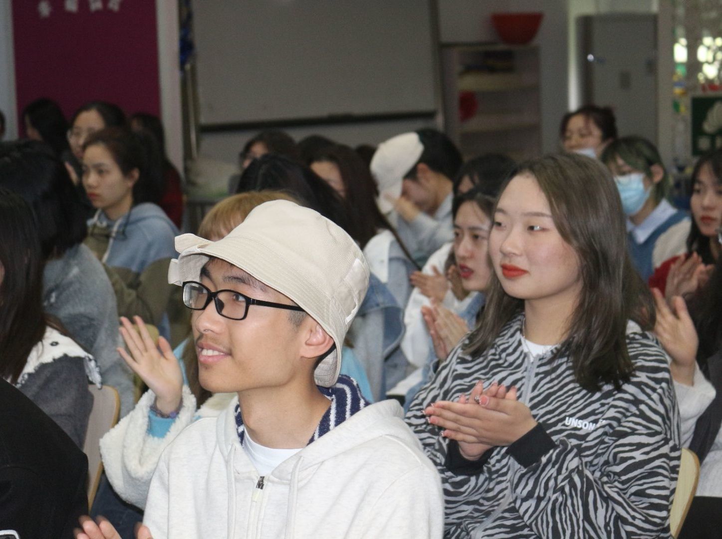 张老师表示:“幸福就是一种智慧,是让我们产生积极行动力和心理力量。”所以成为一名“智慧”的大学生,就是要有幸福感,要用积极乐观的态度去对待每一天。须知幸福的秘诀仅掌握在自己手上,幸福需要每一天积极的努力和投入,相信在场的美院学子都会智慧生活,找到自己的幸福之路。