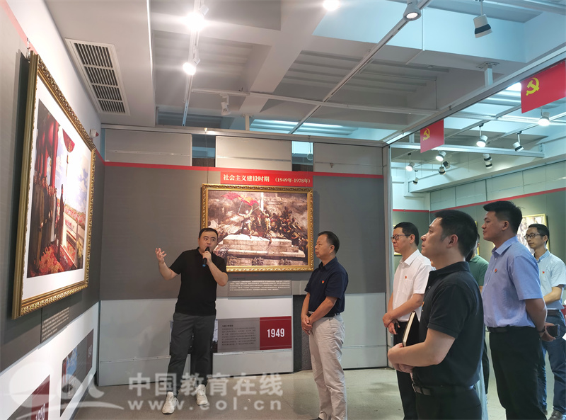 中国教育在线浙江站讯 (实习记者 鲁少辛 通讯员 王颖)为庆祝中国共产党百年华诞,回顾中国共产党波澜壮阔的奋斗历程,热情讴歌建党百年的辉煌业绩。近日,“美术经典作品中的党史”庆祝建党百年主题教育展在js6668金沙登录入口服装楼展厅开幕。