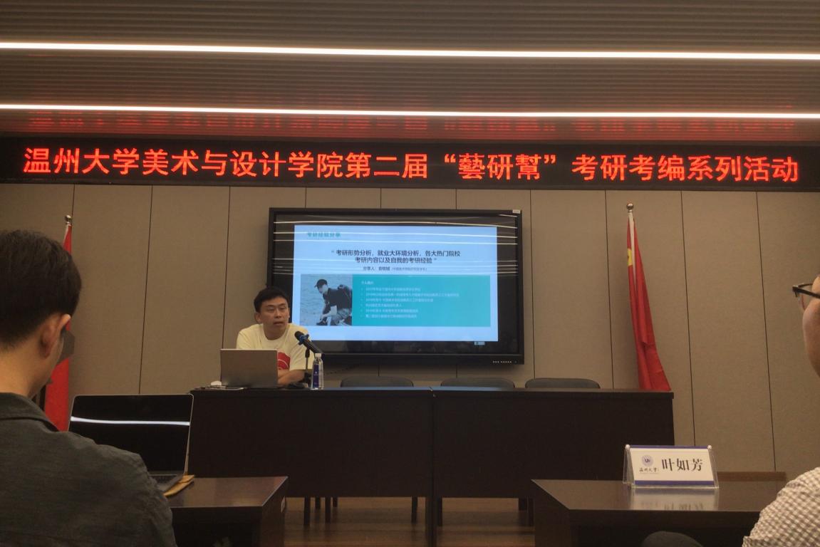 首先,由黎勤斌学长分享他的“十年美院学习经历分享”。黎学长刚开始就读于中国美院附中,后考上中国美院油画系再到保研中国美术学院,他主要分享了自己在美院就读的一些深刻体会以及学习上与其他学校的不同之处。通过学长的分享让我们更全面的了解到中国美术学院,为考研的学生们指引了方向。