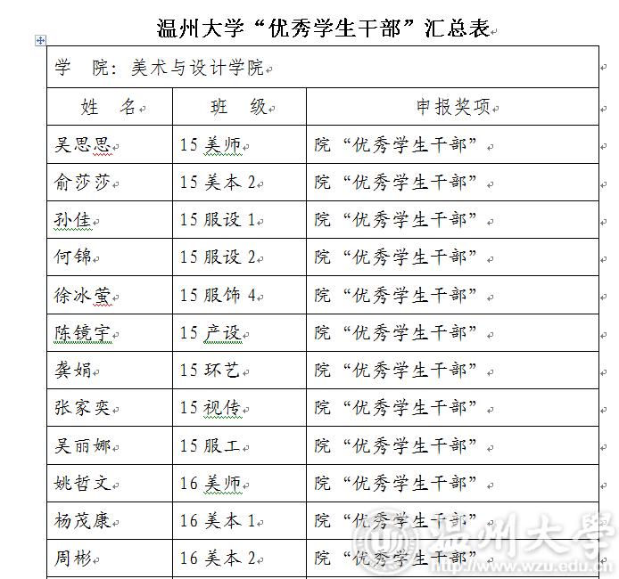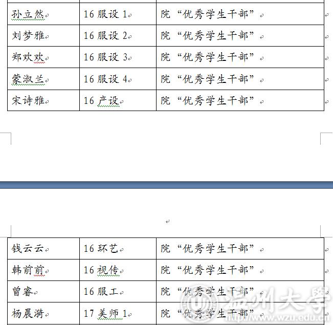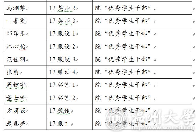 2017-2018学年第二学期js6668金沙登录入口“优秀学生干部”“工作及积极分子”名单