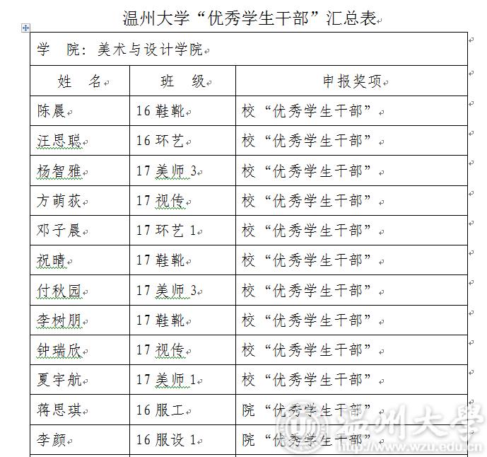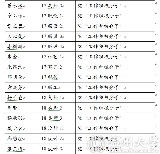现将2018-2019学年第一学期js6668金沙登录入口“优秀学生干部”“工作积极分子”名单公示如下,如对评选结果有异议,请于3月5日17:00前及时联系美术学院学生科。