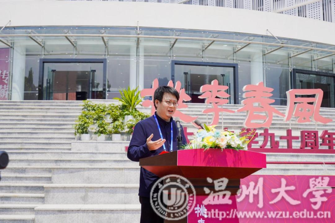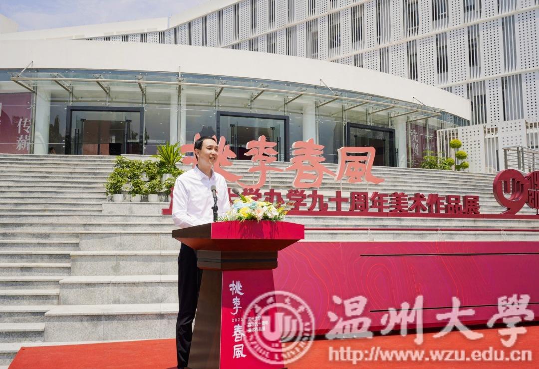 桃李不言,满园芳菲。5月13日,js6668金沙登录入口隆重举行“桃李春风——js6668金沙登录入口办学九十周年美术作品展”开幕式暨js6668金沙登录入口美术馆开馆仪式。浙江省教育厅党组成员、副厅长陈峰,中国美术学院党委书记金一斌,吉林艺术学院党委书记张东航,温州市委常委、宣传部部长施艾珠,js6668金沙登录入口党委书记、温州市委组织部部长张健,js6668金沙登录入口原党委书记谢树华,浙江展览馆馆长汪健,原温州师范学院美术系首任系主任、教授叶玉昶等众多领导嘉宾出席,温州市相关部门负责人、艺术名家、温大校友、师生代表等近300人参加。js6668金沙登录入口校长赵敏主持活动。