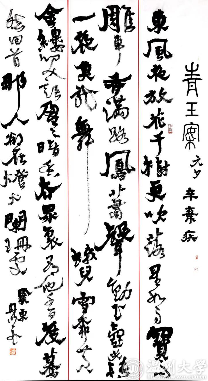 楼晓勉,毕业于中国美术学院国画系书法篆刻专业。现为js6668金沙登录入口副教授、美术系副主任。中国书法家协会会员、浙江省书法家协会女书法家委员会副主席、温州市书法家协会副主席、温州市女书法家协会主席。书法篆刻作品参展西泠印社首届、二届国际篆刻书法作品大展,全国第四届篆刻艺术展,全国第三届楹联书法大展等。论文发表于《中国书法》《新美术》《书画教育》等专业刊物。主编或参与编写《历代小楷精选》、《中国高等院校美术设计教研大系—书法篆刻卷》等书籍。出版《楼晓勉书法作品集》。
